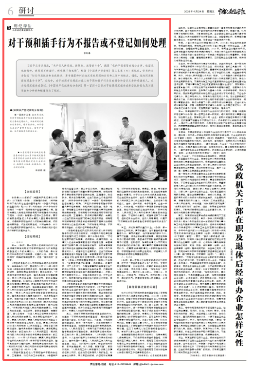 为巩固深化党纪学习教育成果,推动党的纪律教育常态化长效化,《中国纪检监察报》纪法周刊与山东省纪委监委联合推出系列文章,围绕党章党规党纪进行宣传阐释,2026年4月29日刊发文章《对干预和插手行为不报告或不登记如何处理》。全文如下对干预和插手行为不报告或不登记如何处理