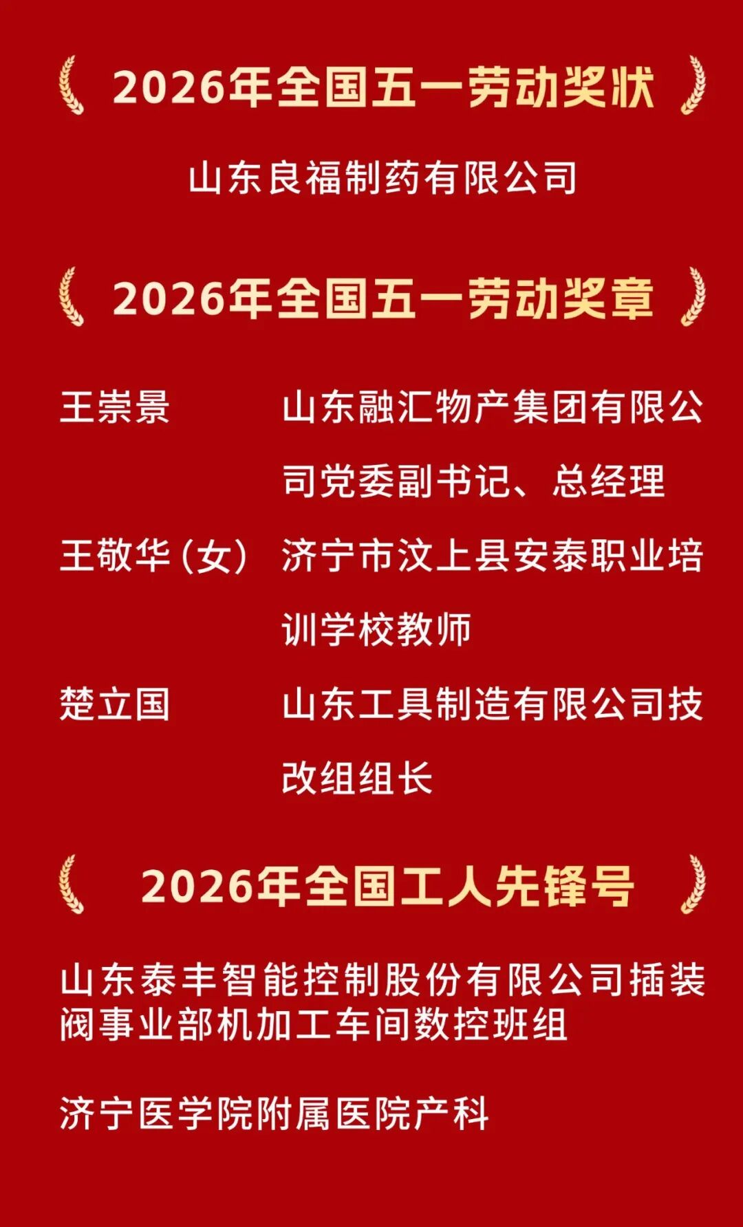 2026年全国五一劳动奖章