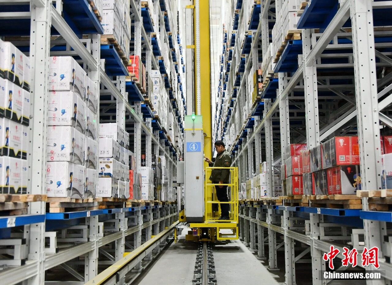 2024年3月12日,在河北永年工业园区的河北喜力德五金制造有限公司,工人正在智能仓储车间装卸货物。胡高雷 摄老师傅韩孟奎回忆,那时“呼啦呼啦的风箱声、烧得通红的炉火、锤下四溅的火花”,是乡镇里常见的生产图景。