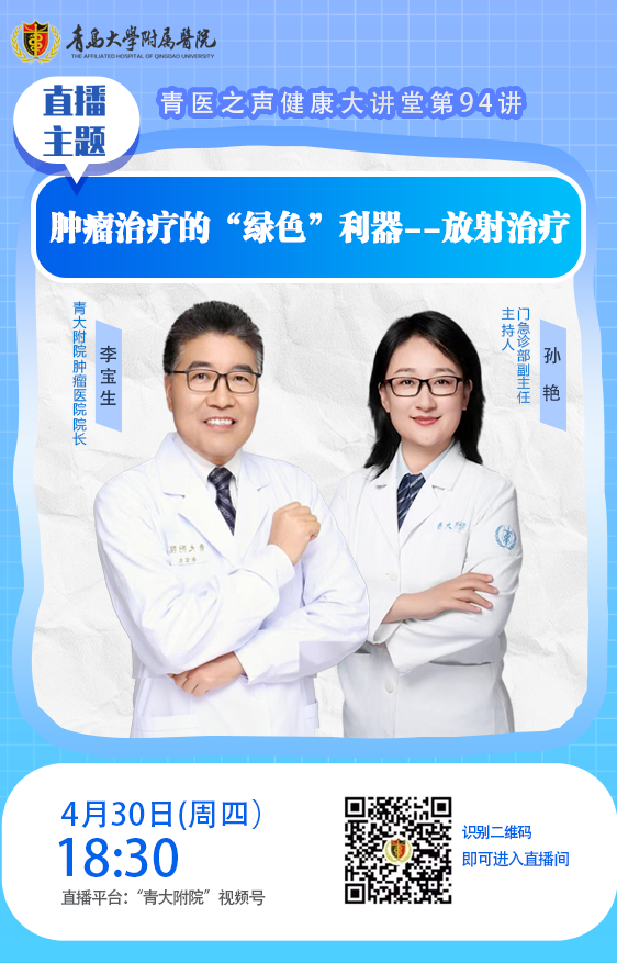 直播预告|青大附院肿瘤医院院长李宝生:肿瘤治疗的“绿色”利器——放射治疗