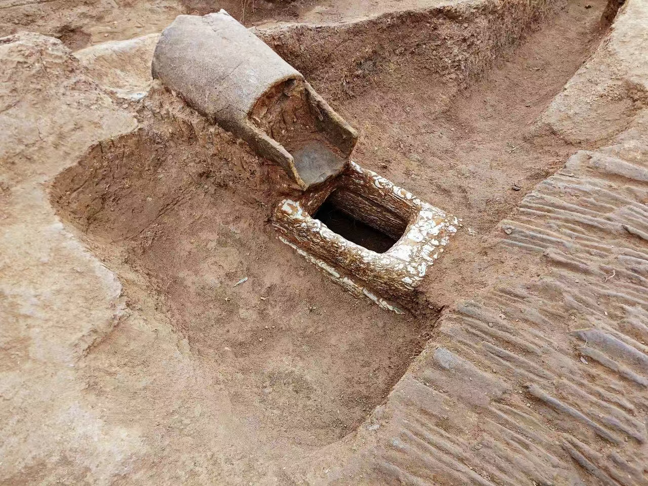 遗址发掘出土的排水设施。