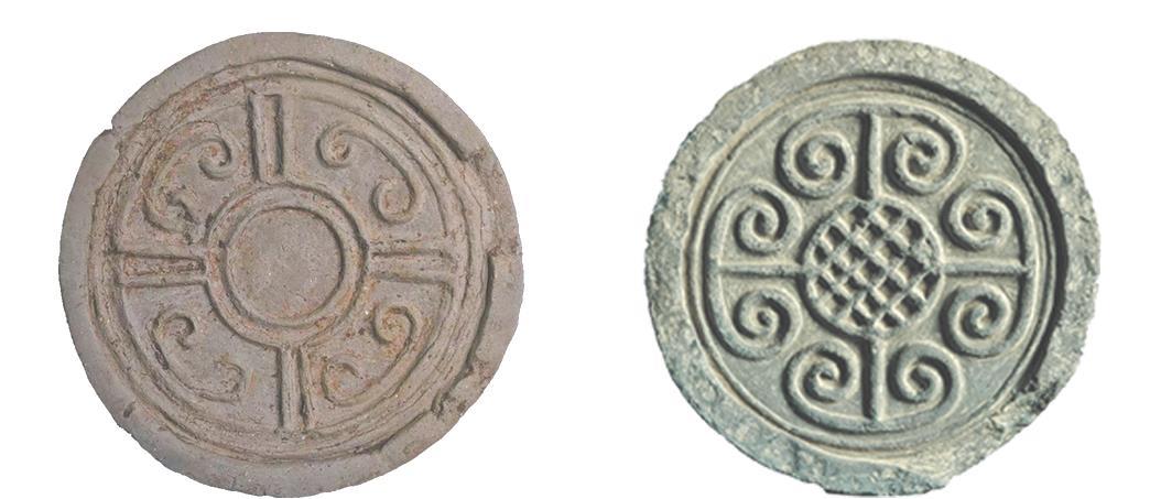 山顶遗址出土的瓦当(左),与秦始皇陵出土哦瓦当(右)。