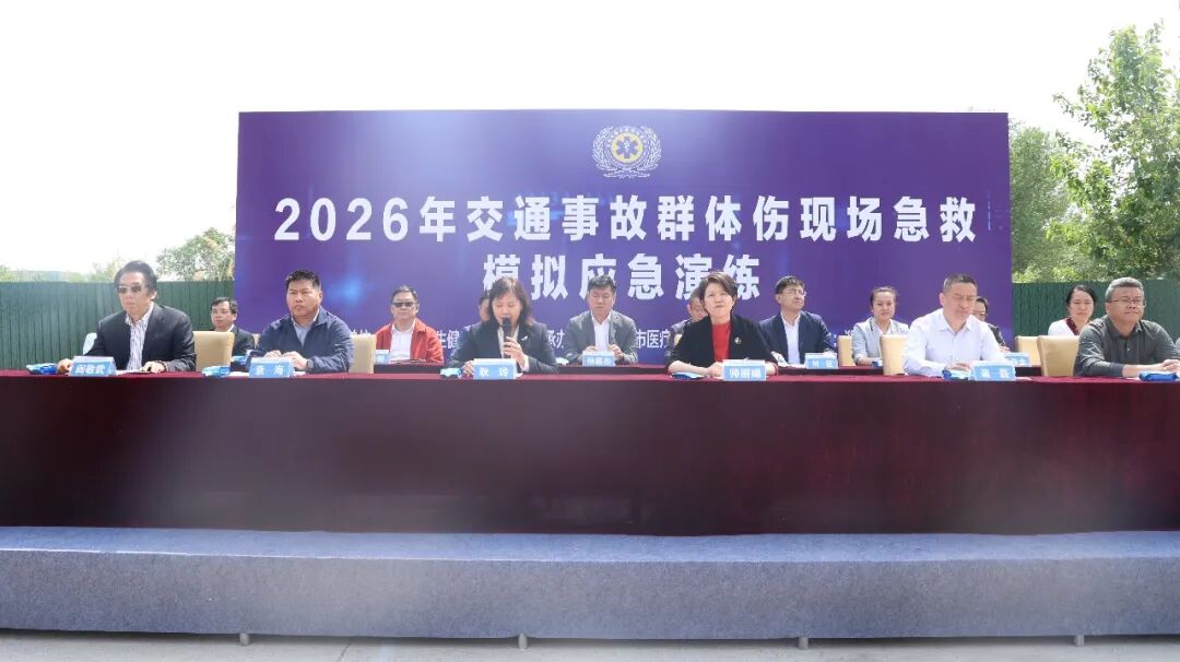 以演砺精兵,实战守平安。4月28日上午,淄博市2026年交通事故群体伤现场急救模拟应急演练在世博高新医院东停车场圆满举行。本次演练采用全实景事故还原、全链条闭环管控、多单位协同联动的模式,全面检验全市院前医疗急救应急响应与联合处置能力。市卫生健康委分管领导及相关科室负责人、市医疗急救指挥中心领导班子成员,以及主城区各急救站点分管领导、科室主任全程观摩参演。