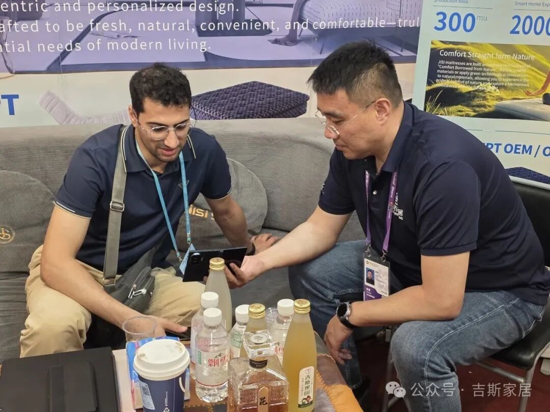 展会期间,吉斯家居展位始终客流不息、洽谈氛围火热。来自英国、巴西、南非、西班牙、阿根廷、哈萨克斯坦、印度等全球数十个国家和地区的专业采购商接踵而至,不少海外客商更是专程赴展,直奔吉斯展位沉浸式体验产品、对接合作需求。
