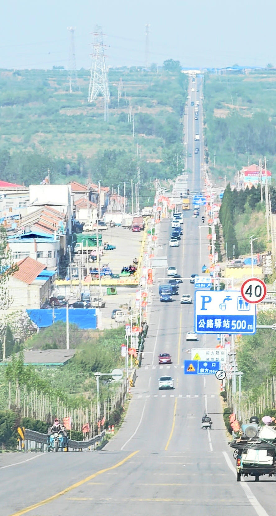 1、每年秋季,苹果丰收,果农卖苹果的三轮车较多,务必谨慎驾驶。