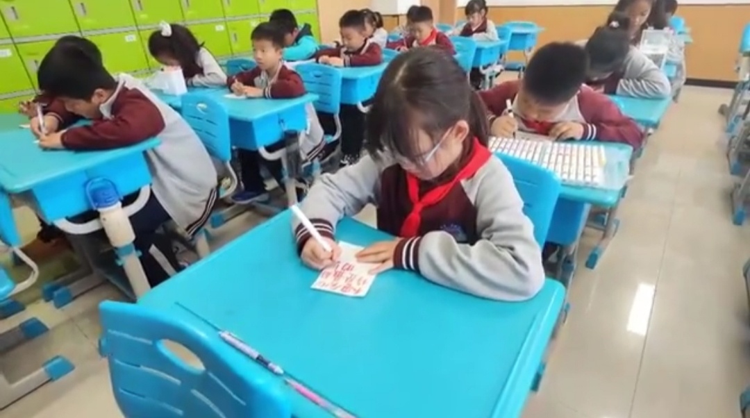 在“开心能量卡”制作环节,同学们写下鼓励话语、绘制快乐妙招,把温暖与自信装进卡片,既为自己充电,也向伙伴传递正能量。