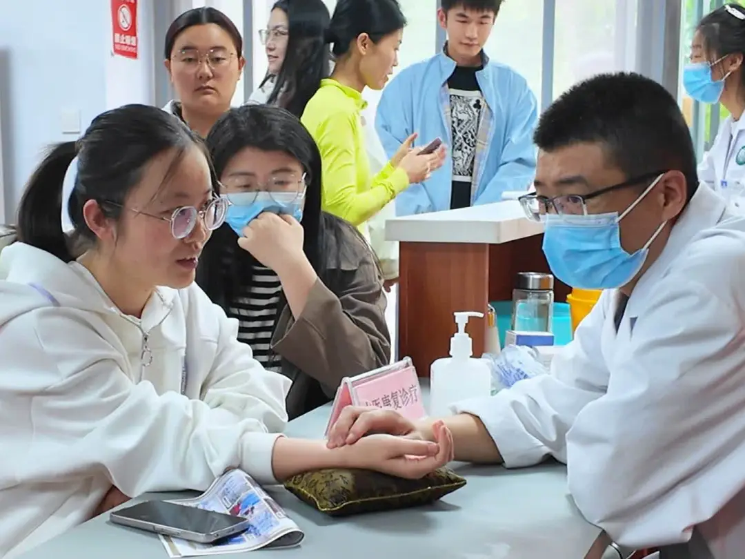 活动现场,医护团队结合师生群体特点,精心设置多个服务点位,涵盖中医把脉、疼痛诊疗、穴位贴敷、耳穴压豆等多项特色服务,兼顾常见病咨询与中医养生调理。