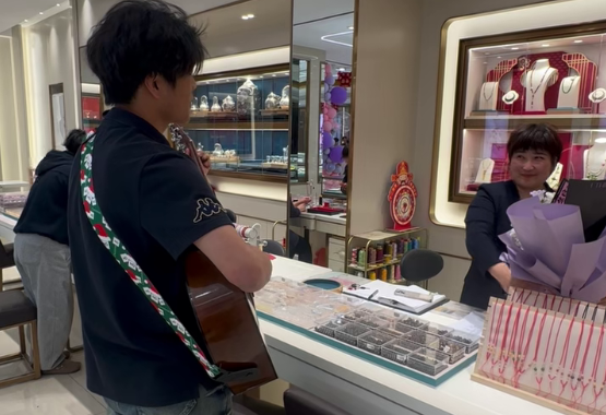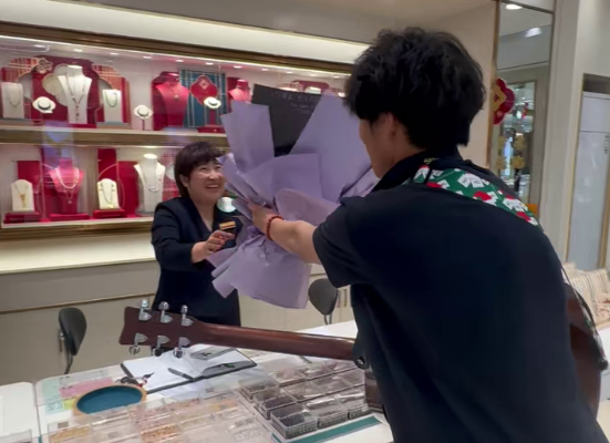 生日当天,母亲像往常一样坚守在工作岗位,对即将到来的惊喜毫不知情。当儿子手捧鲜花、背着吉他出现在她面前,满怀笑意的说出,“一首《颜色》送给宋姐”,瞬间让母亲湿了眼眶。少年轻轻拨动琴弦,歌声青涩却真挚,旋律温柔又深情,每一句都藏着对母亲的感恩与爱意。