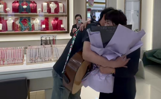 温柔的歌声、芬芳的鲜花,搭配少年认真的模样,让现场同事纷纷驻足见证,拿出手机记录下这一温馨瞬间,不少人都被这份纯粹的孝心打动。看着眼前懂事的儿子,母亲满是欣慰,泪水悄然滑落,平日里工作与生活的疲惫,在这一刻全部化为幸福,紧紧相拥的母子俩,定格下高三备考时光里,最温暖治愈的亲情画面。
