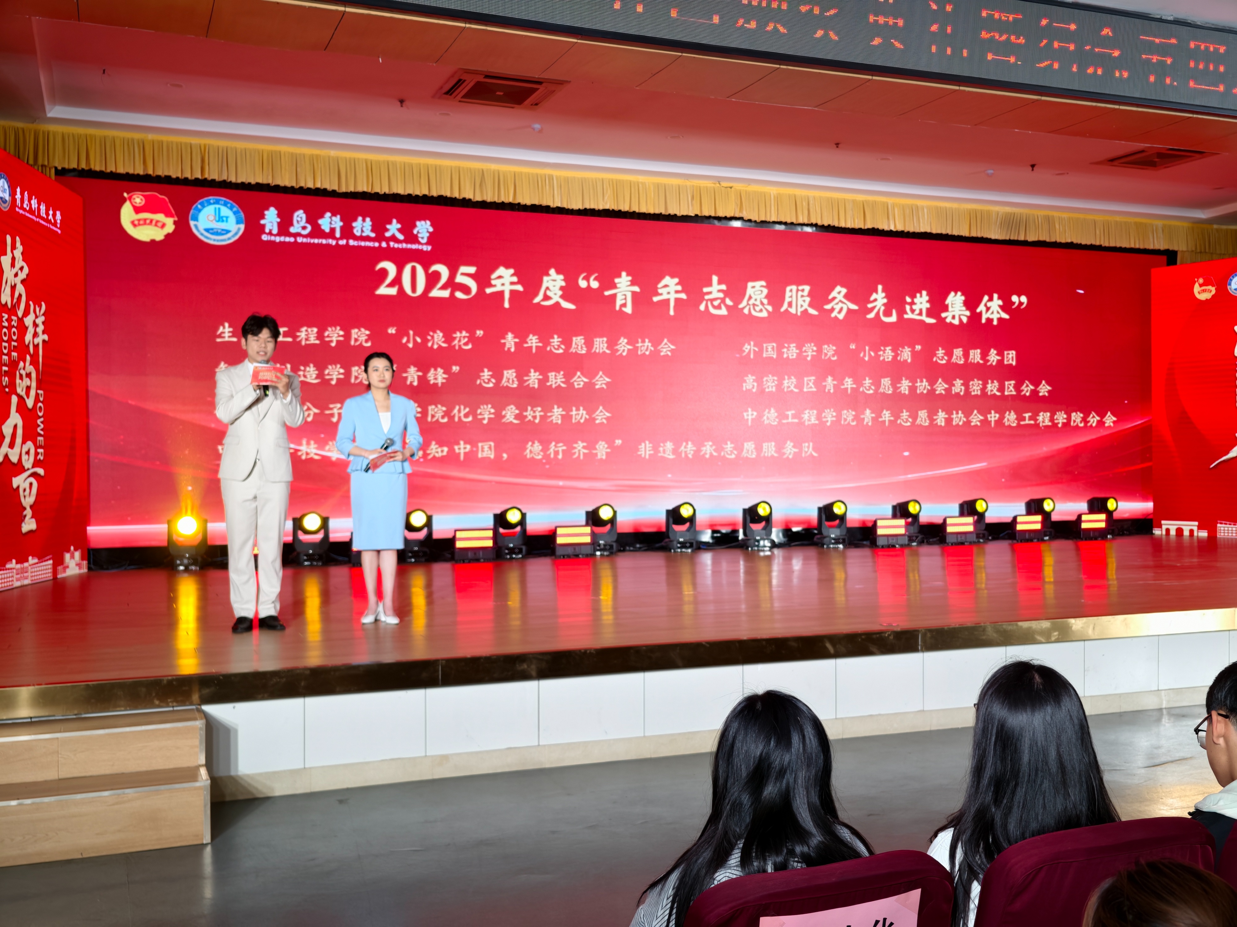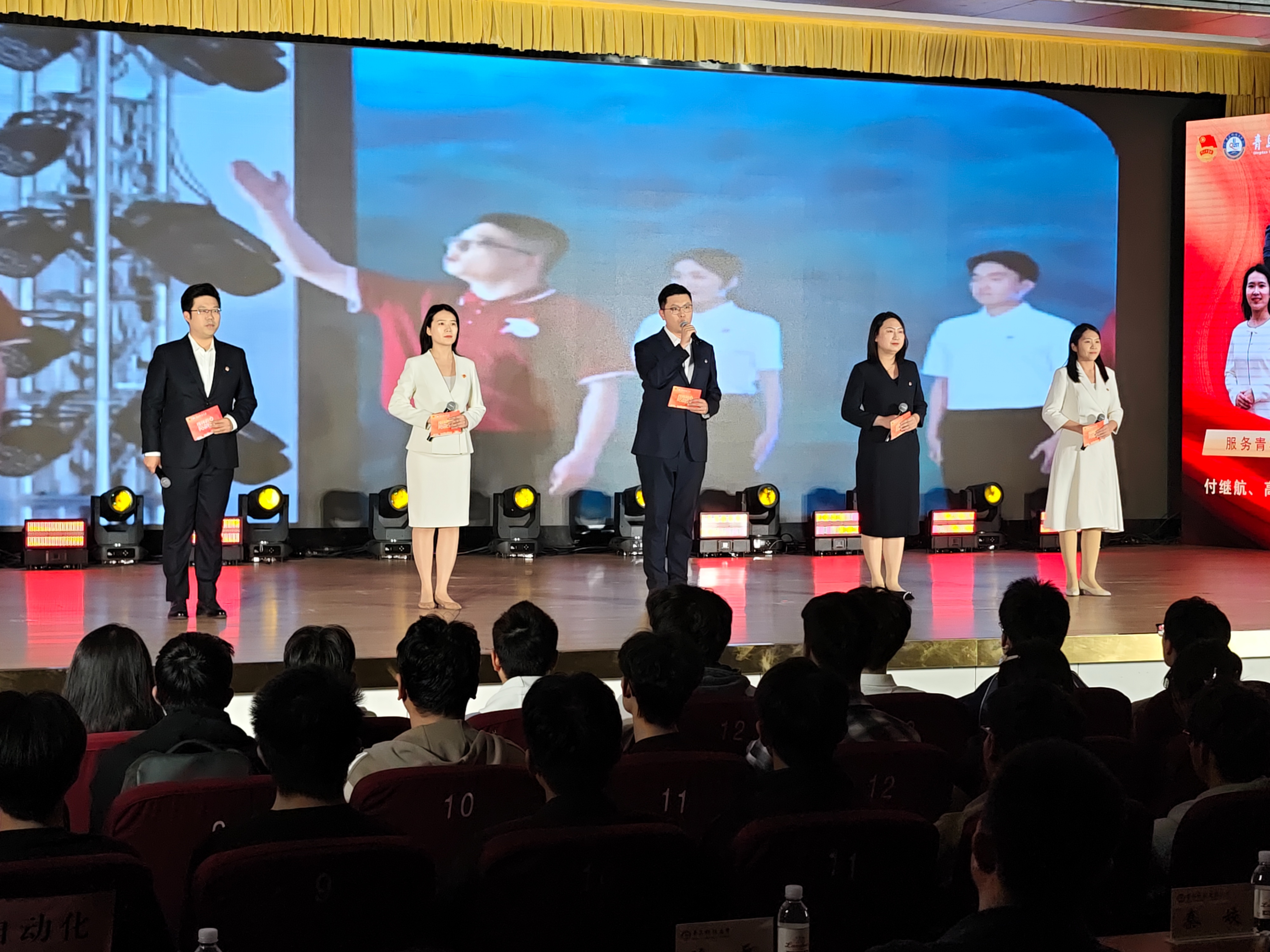 在青春思政课环节,来自学校各领域的优秀团队和青年代表依次登台,讲述榜样故事。轮胎数字化设计制造团队分享了打破国外技术垄断、实现橡胶装备自主可控的攻关事迹;团干部代表以执着坚守,诠释了“用365天陪伴守护青年成长”的育人初心;雷锋式团支部以实际行动,生动展现了新时代雷锋精神的青春底色;学生骨干代表用扎根同学、实干担当的行动,践行“从同学中来,到同学中去”的青春誓言;石老人海水浴场见义勇为模范群体用果敢行动彰显了新时代大学生的责任担当;“小语滴”志愿服务团展现了在国际舞台擦亮“志愿者,找青科”名片的青春风采;研究生支教团十四年接续奋斗,用青春书写教育帮扶的动人篇章。