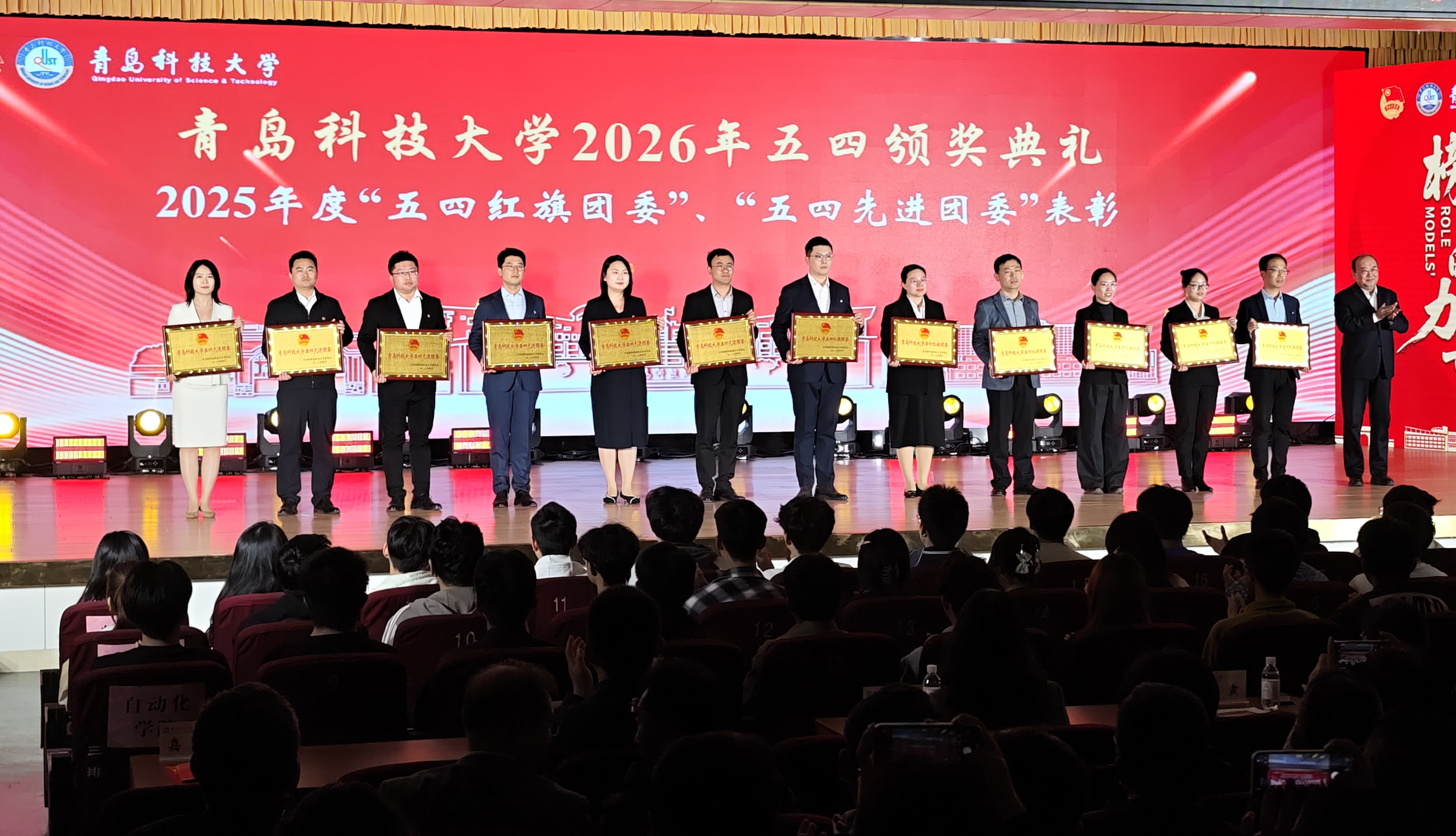 为进一步弘扬五四精神,激励全校团员青年向榜样看齐、向先进对标,4月28日,青岛科技大学2026年五四颁奖典礼暨纪念五四运动107周年“榜样的力量”青春思政课在崂山校区第二报告厅举行。多个榜样团队用朴实的语言和真挚的情感“沉浸式”宣讲,引发在场师生强烈共鸣。本次活动彰显了青春榜样力量,展现了青科大青年的橡胶品格,更激励全体科大青年高举“五四”火炬,在民族复兴的征程中接续奋斗。