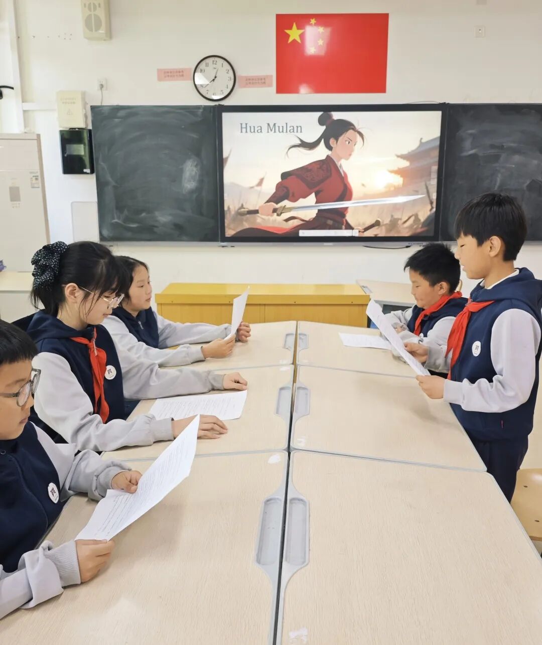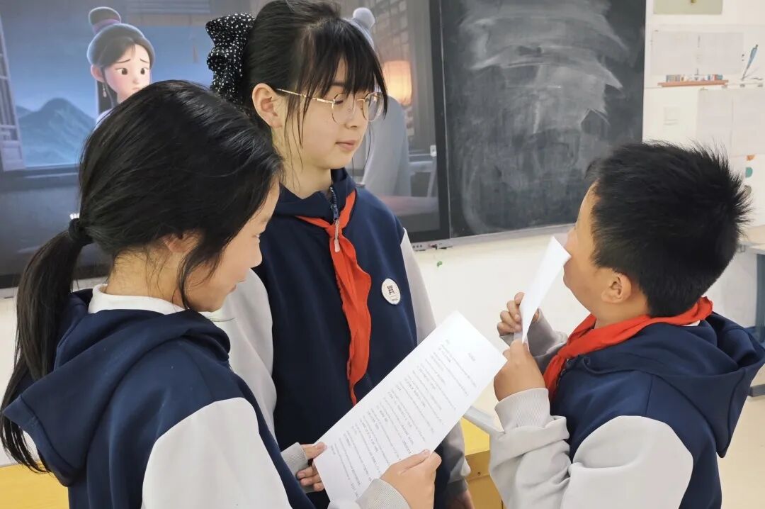 练习过程中,同学们主动查阅花木兰故事资料,梳理故事脉络,反复练习英语台词,用心打磨每一个细节。在老师的指导下,大家不仅熟练掌握了故事相关英语表达,更深入理解了传统文化内涵,明白了忠孝、勇敢、责任的意义,实现了语言学习与文化熏陶的双向成长。