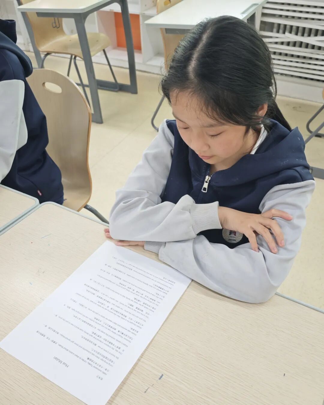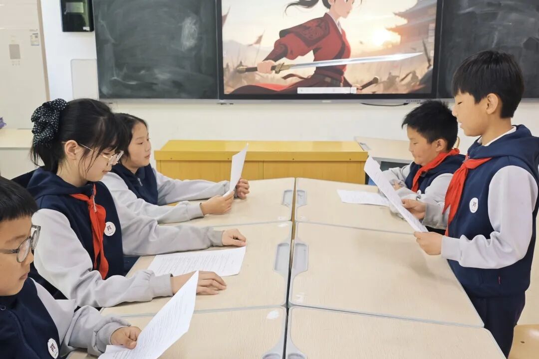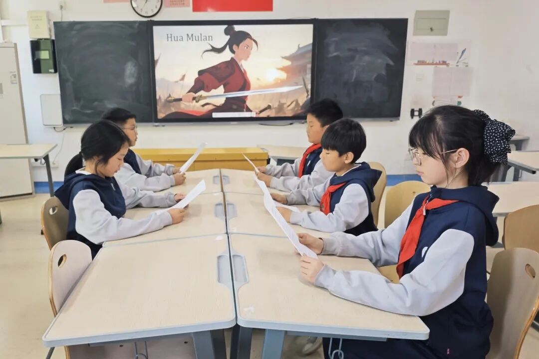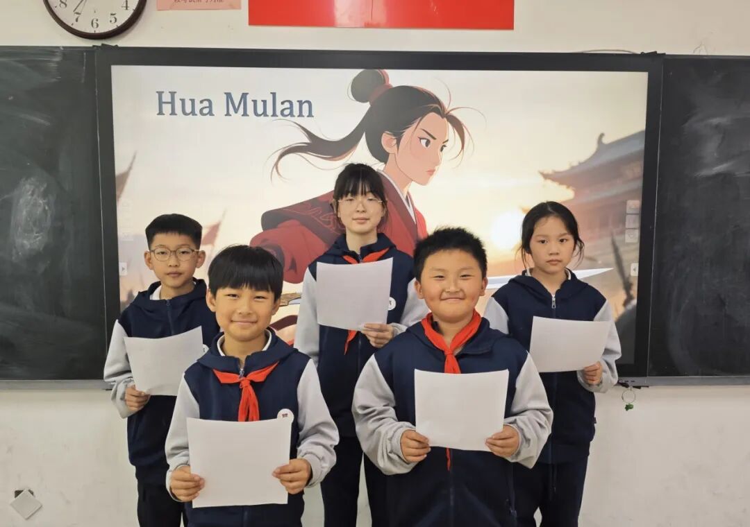 同学们精神饱满、自信大方,化身小小故事家。他们用清晰的发音、生动的语调、富有感染力的表达,将花木兰替父从军、英勇报国、孝顺坚毅的经典故事娓娓道来。从征兵背景的讲述,到从军历程的演绎,再到荣归故里的收尾,同学们全程用英语流畅呈现,不仅展现了扎实的英语语言功底,更是将花木兰的孝心、勇敢、担当精神一字一句地讲述出来。