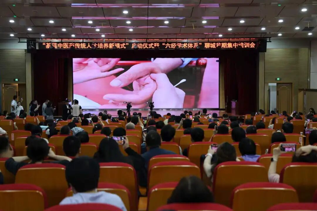 4月28日,山东省“基层中医药传统人才培养新模式”启动仪式暨孙付军“六经学术体系”聊城首期集中培训会在市中医医院举行。来自全市11个县(市、区)的400余名基层医医生参加培训。省卫健委中医药科技教育处处长牛晖,省中医药研究院中医基础研究所(针灸研究所)所长孙付军,省六经学术体系专业委员会秘书长李彗莉出席活动,市卫健委党组副书记、副主任,市中医药管理局副局长谢华主持活动并致辞。