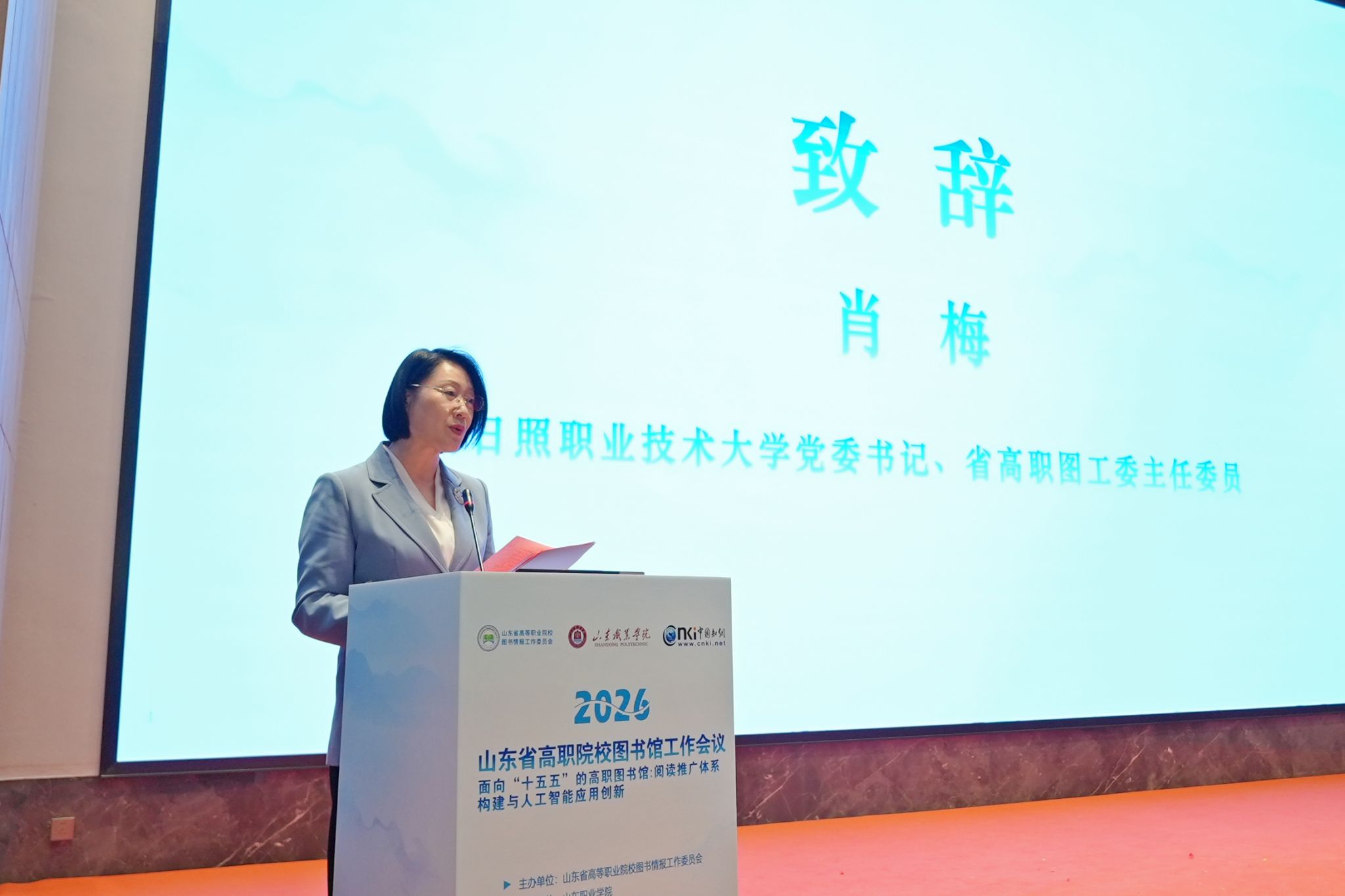 省高职图工委主任委员、日照职业技术大学党委书记肖梅作工作报告,全面回顾了过往工作成效,部署了2026年重点工作任务。