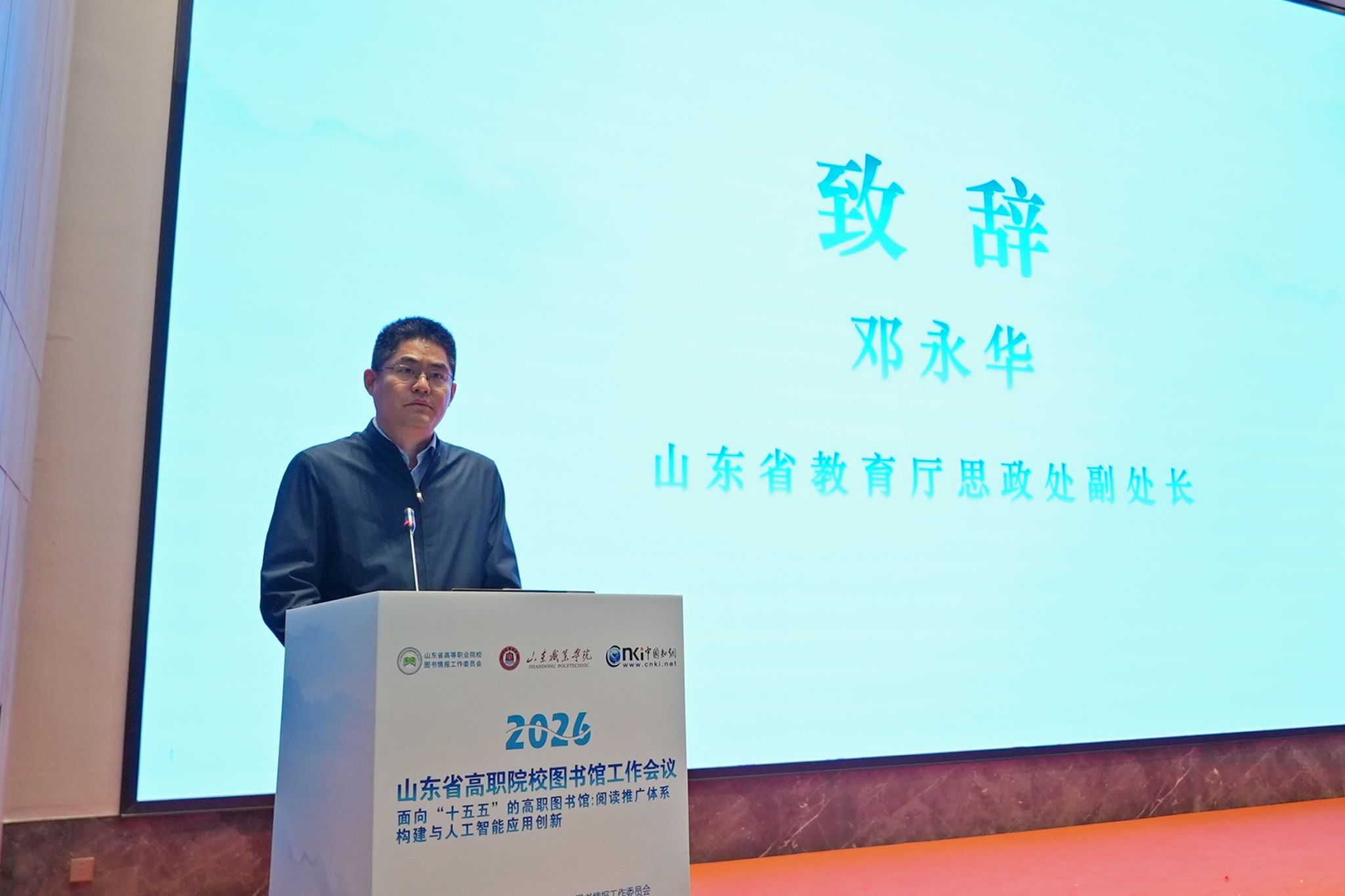 山东省教育厅思想政治工作处副处长邓永华出席会议并讲话。他表示,高职图书馆作为职业教育的重要文化阵地,要以人工智能为智慧引擎,以产教融合为发展根基,加快推进从传统文献服务中心向文化育人中心、知识服务中心、创新支持中心的转型跨越,用书香浸润校园、用文化涵养匠心,着力培育新时代“齐鲁工匠”,为职业教育高质量发展注入文化动能。