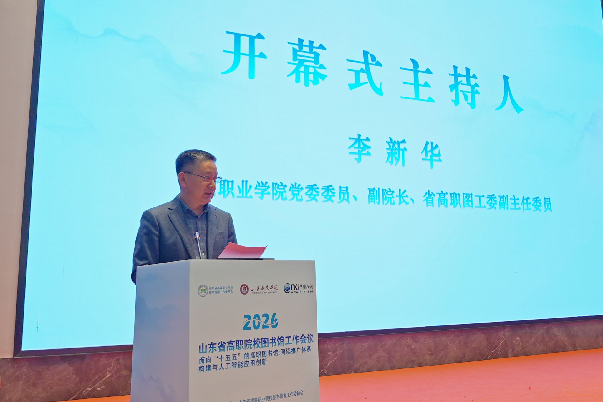 会议由山东省教育厅指导,山东省高等职业院校图书情报工作委员会(以下简称“省高职图工委”)主办,山东职业学院承办。来自全省50所高职院校的图书馆馆长、业务骨干及业界代表共100余人齐聚泉城,共话发展新机遇。会议由学校副院长李新华主持。
