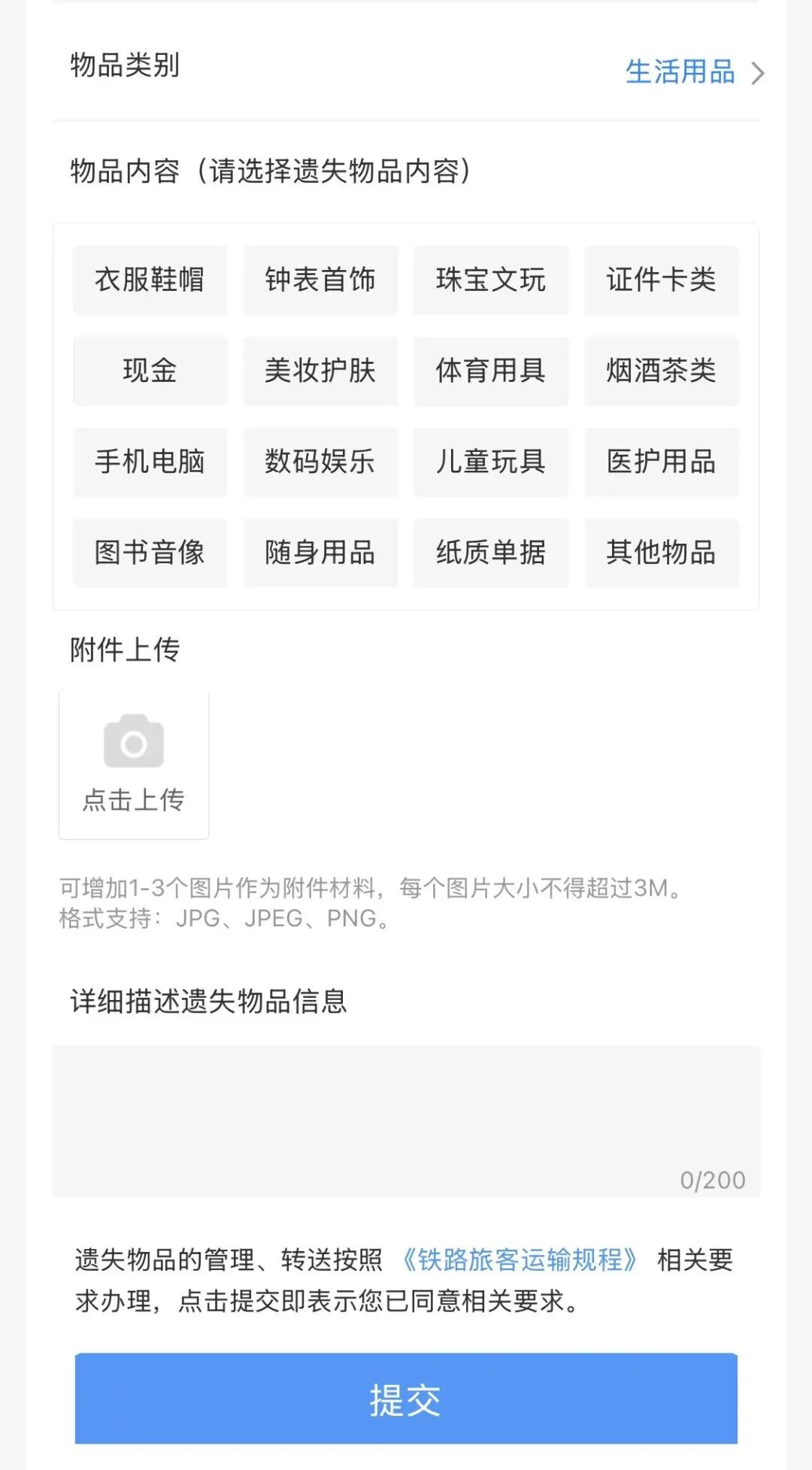 在“遗失物品登记”页面