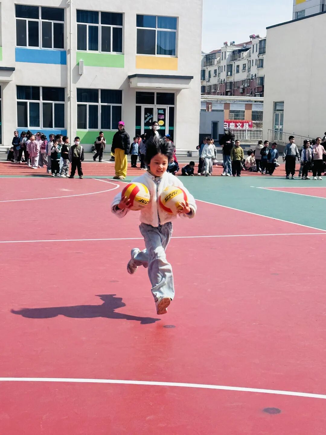 场边拉拉队喊得热火朝天:“稳住!球别跑!”一个小男孩球全掉了,急得原地转圈,队友们齐声喊:“捡起来!你可以的!”他深吸一口气,抱起球摇摇晃晃冲过了终点。一个小女孩抱着球笑嘻嘻地说:“像抱两个大西瓜,太好玩啦!”