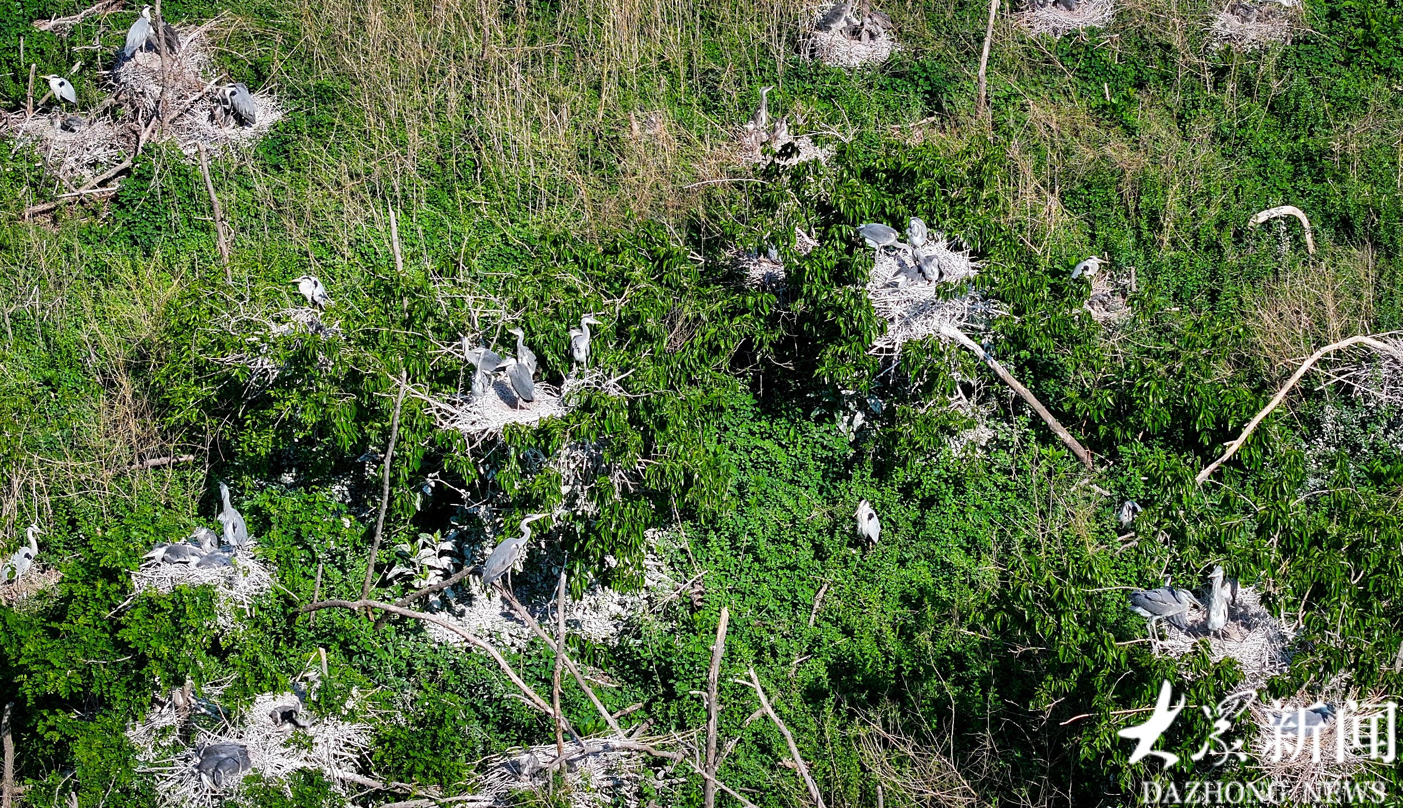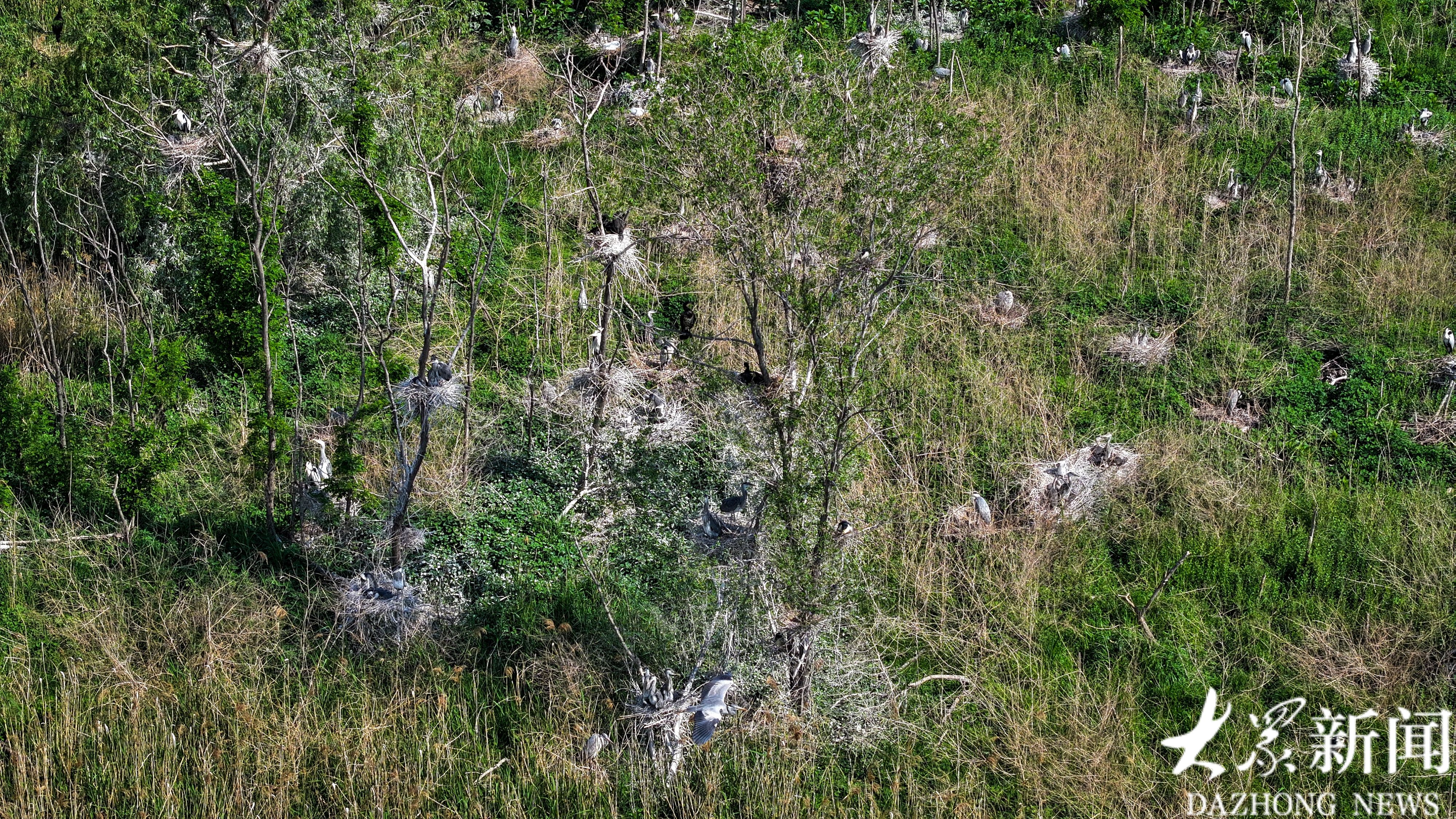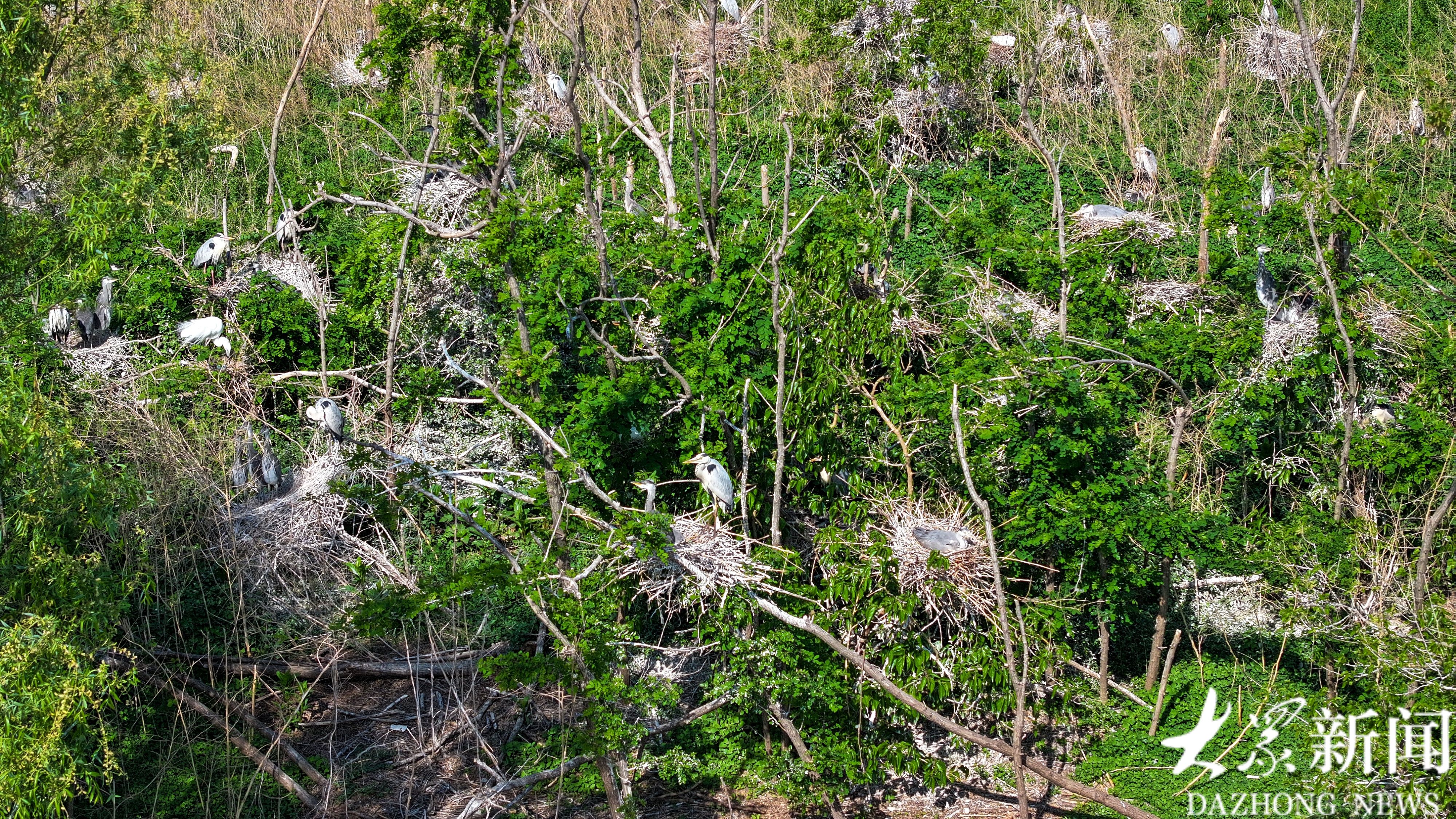 在山东省第45届“爱鸟周”期间,潍坊市自然资源和规划局峡山分局开展鸟类专项巡护监测,监测到这片区域罕见的苍鹭、鸬鹚规模化繁殖群落。