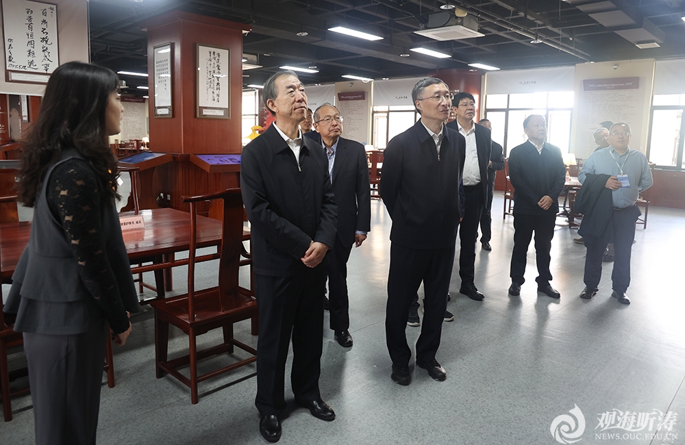 李明、张峻峰与来访嘉宾及参赛师生参观校史馆、海洋科技展厅等