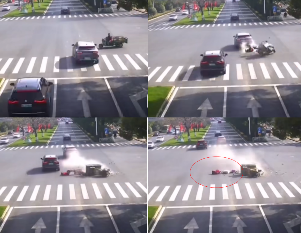 三轮车车上人员被甩出,造成伤亡