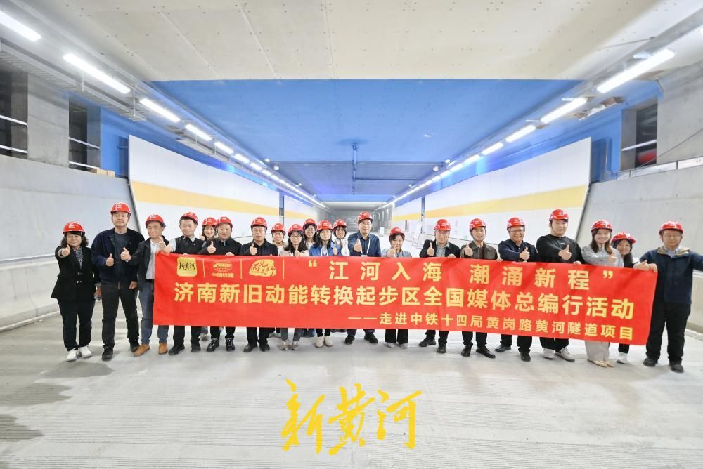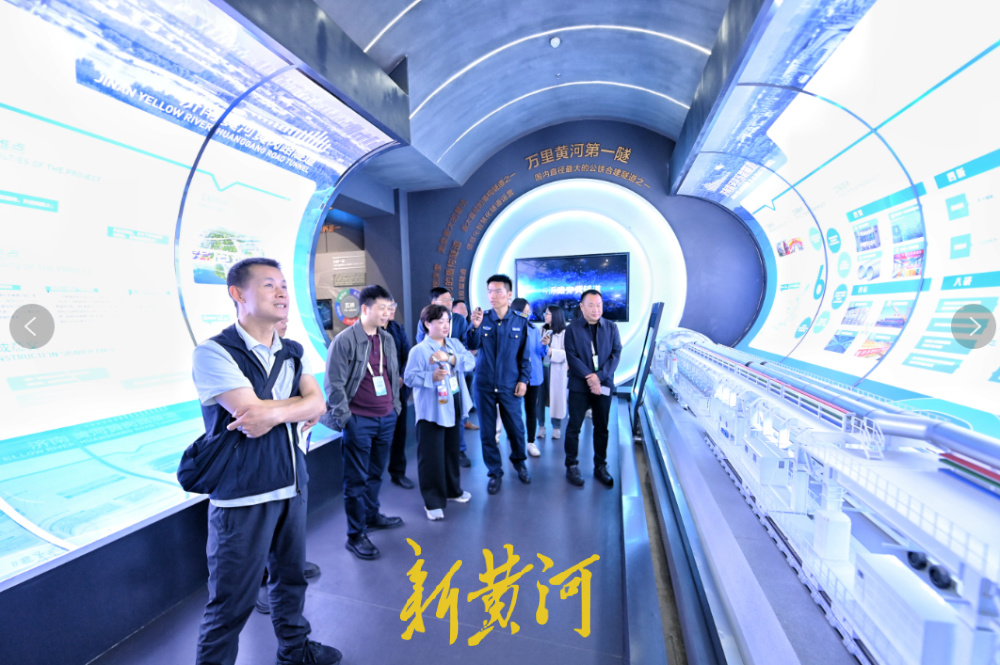 跨黄桥隧的建设,是济南拥河发展破题的关键支撑。采风团首站走进济南城市建设集团“四桥四隧”跨黄通道展厅,详细了解跨黄桥隧的建设历程与技术突破。在世界最大直径水下盾构隧道——济南黄岗路黄河隧道建设现场,盾构机所用的重型刀片吸引了众人目光,大家纷纷感慨“一件配件就足以窥见超级工程的磅礴力量”。当采风团一行步入地下隧道,对“世界最大直径”有了更为直观的感受,中铁十四局项目建设者们正抢抓春季施工黄金期,隧道上部现浇烟道板、机电安装与装饰装修等工序正全面展开。目前,济南跨河发展的交通骨架已全面拉开,未来这里将形成21处跨河桥隧,“黄河变成城中河”的愿景照进现实。