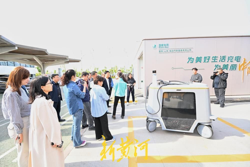 来到国内首座全要素绿色低碳车网互动充换电示范站,V2G双向充电桩等先进设备和“5分钟补能300公里”的充换电效率,引起了大家的浓厚兴趣。在鹊山生态文化区,采风团体验乘坐无人驾驶公交车,到鹊华中新园、如梦令宋词主题演绎乐园及泉韵LIVE,沉浸式感受起步区对外开放成果、多元文旅新业态,近距离感受黄河北岸文旅升级的全新活力。