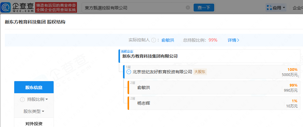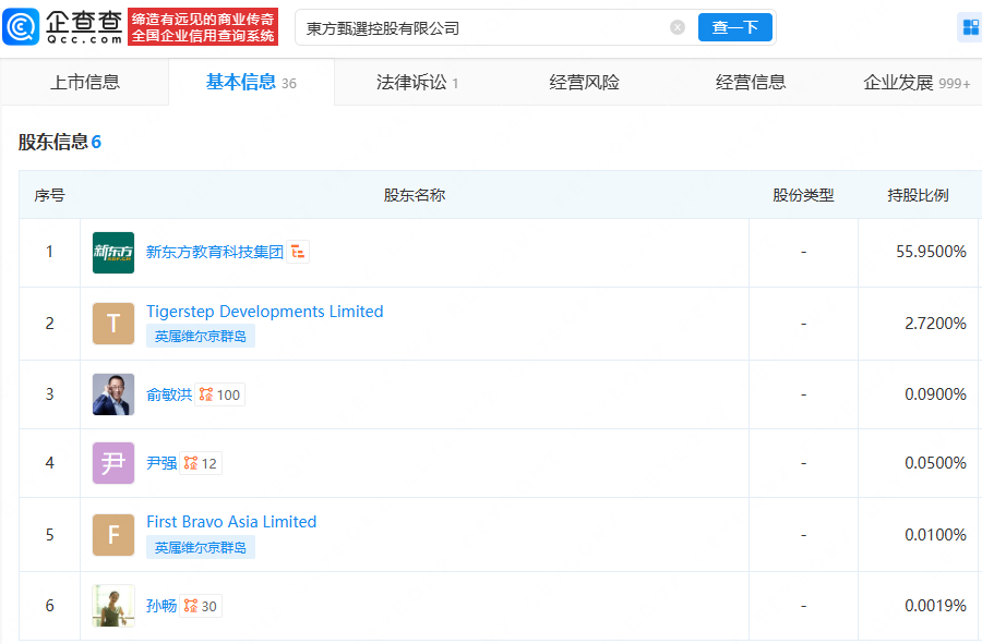 据每日经济新闻,新管理层上位后,东方甄选更是加速告别主播依赖、全面转向产品驱动。2026财年中期业绩显示,截至2025年11月30日,公司累计推出自营产品801款,较上年同期的600款大幅增加,自营产品占总GMV的比例达到52.8%,成为营收的核心支柱。企查查APP显示,东方甄选关联公司东方优选(北京)科技有限公司成立于2021年10月,法定代表人为孙进,由北京新东方迅程网络科技有限公司全资持股。此外,企查查显示,东方甄选控股有限公司最终受益人为俞敏洪。