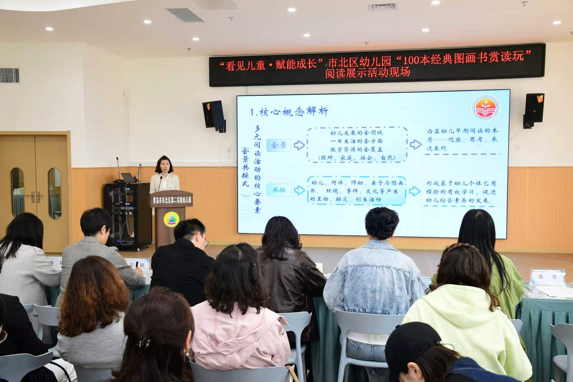 4月28日,“看见儿童·赋能成长”市北区幼儿园“100本经典图画书赏读玩”阅读展示活动在市北区第二实验幼儿园梧桐苑园区火热举行,集中展示区域图画书阅读与课程深度融合的教研成果,彰显阅读育人的专业价值与实践力量。来自全区及市内其他三区的园长代表、市教育局菁英计划青蓝组成员等100余人来到现场,更多园长、老师线上同步参与。