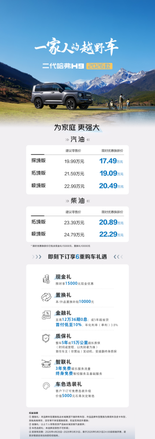 二代哈弗H9 2026款正式上市,限时换新价17.49万元起