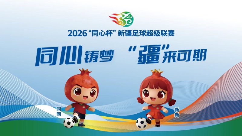 “疆”字踢足球 石榴抱成团 2026“同心杯”新疆足球超级联赛会徽吉祥物发布