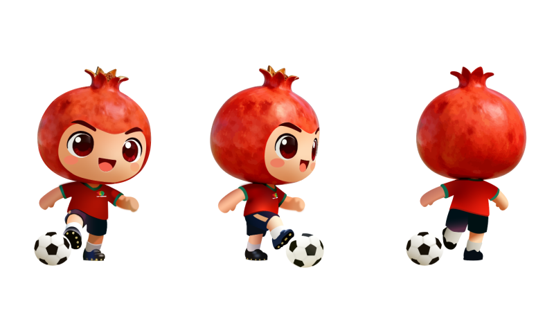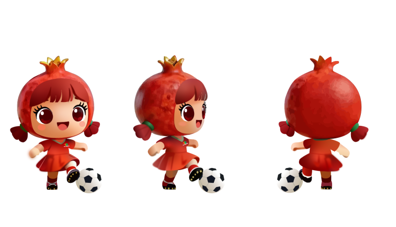 与会徽相映成趣的,是寓意深远的赛事吉祥物。以象征民族团结的“石榴”为核心原型,打造出“同同”与“新新”这对吉祥物,契合“同心杯”赛事精神与新疆文化。造型上采用饱满红润的石榴果头造型,搭配金色华丽果蒂,直观传递“石榴籽紧紧抱在一起”的内涵,同时契合赛事“同心”主题。