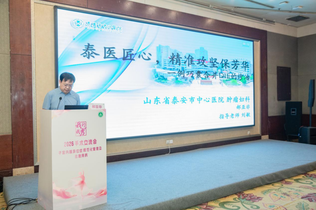 本次区域赛中,郝亚非聚焦一例复杂型深部浸润型子宫内膜异位症(DIE)病例,完整展示了从病例评估、诊疗方案制定到手术实施的全流程规范化诊治过程。其缜密的临床思维、精细的手术操作、清晰的逻辑阐述,得到了专家评审团的高度评价与一致认可。泰安市中心医院普通妇科副主任刘敏教授作为指导老师及评委专家全程参与会议,为赛事的顺利开展及选手指导提供了专业支持。