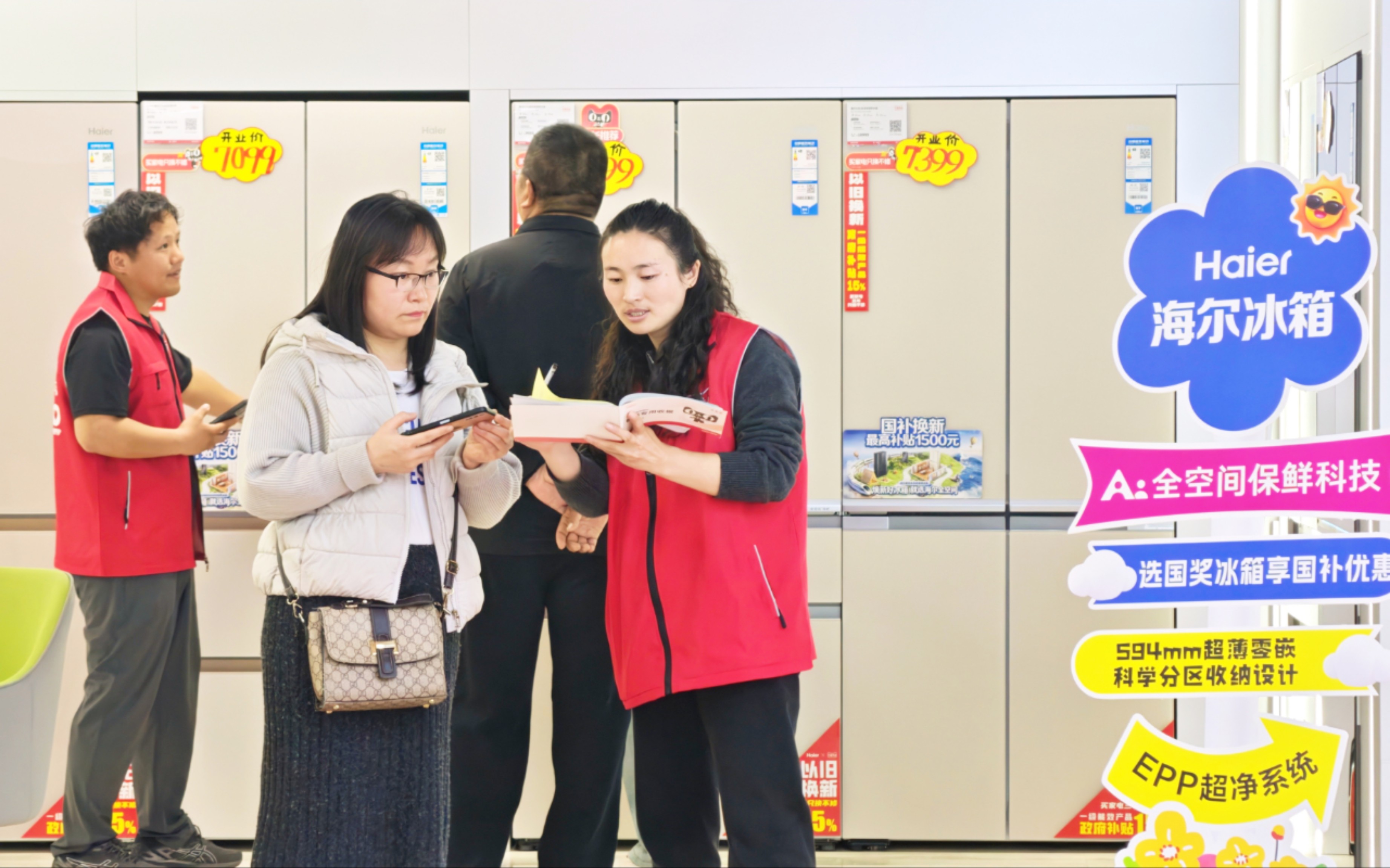 10点58分,活动开业剪彩仪式正式举行,政企领导、行业嘉宾、合作伙伴及市民代表齐聚现场,共同见证这一消费新地标落成。作为区域家电家居新零售标杆门店,宏海天猫优品深度融合线上电商平台资源与线下实体体验优势,积极响应国家绿色低碳发展号召,全面落地家电以旧换新惠民政策。门店针对冰箱、空调、洗衣机、电视等老旧家电,推出上门回收、专业评估、折价抵扣一站式便民服务,引导居民淘汰高能耗老旧家电,置换节能智能新品,有效降低群众换新消费成本,助力废旧家电规范回收循环利用,大力倡导绿色低碳、健康宜居的居家生活理念,为消费者提供单品选购、全屋设计、上门安装、售后维保一体化置家解决方案,实现定制整装一站购、家电家居一站式配齐。