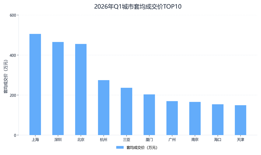 城市楼市同样亮点纷呈。上海、深圳、北京高端房源集聚,套均成交价领跑全国;杭州一季度住宅成交量接近千套,成交总额位居前列,呈现高端领涨、刚需走量的市场特征。三亚、海口凭借度假住宅拉高成交单价上榜,厦门、广州、南京、天津等城市紧随其后,共同跻身全国成交TOP10阵营。