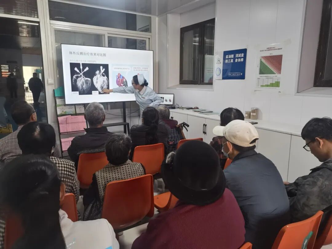 互动环节气氛热烈,居民们踊跃提问,“我刚测的血压稍微偏高,平时饮食和生活上要注意些什么?”“我有糖尿病,是不是一定会影响心脏健康?”面对居民们的疑问,孔文文耐心细致、逐一解答,暖心的叮嘱和专业的回应,让现场居民倍感温暖。活动期间,慢病管理中心的工作人员还为居民免费测量血压、心率,发放心脏健康科普手册,将专业、便捷的医疗服务送到居民身边,切实解决大家的健康困惑。