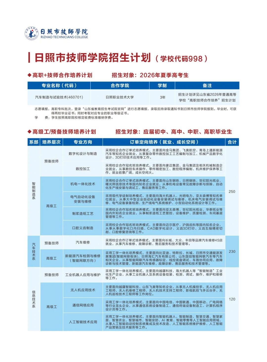日照市技师学院、日照市工程技术学校2026年招生简章