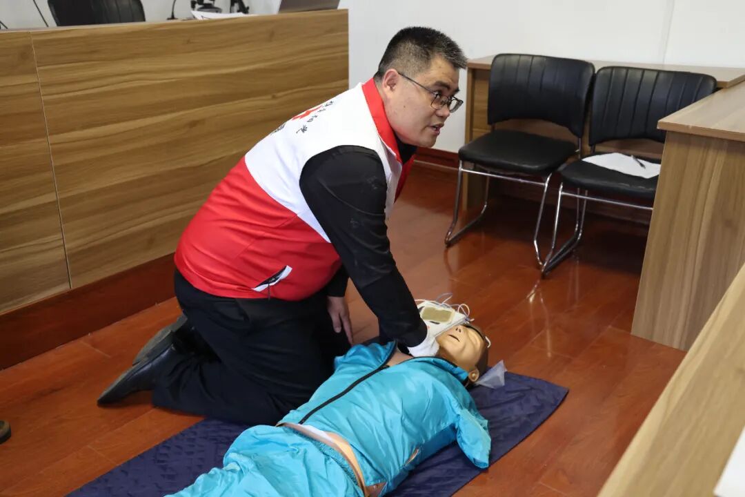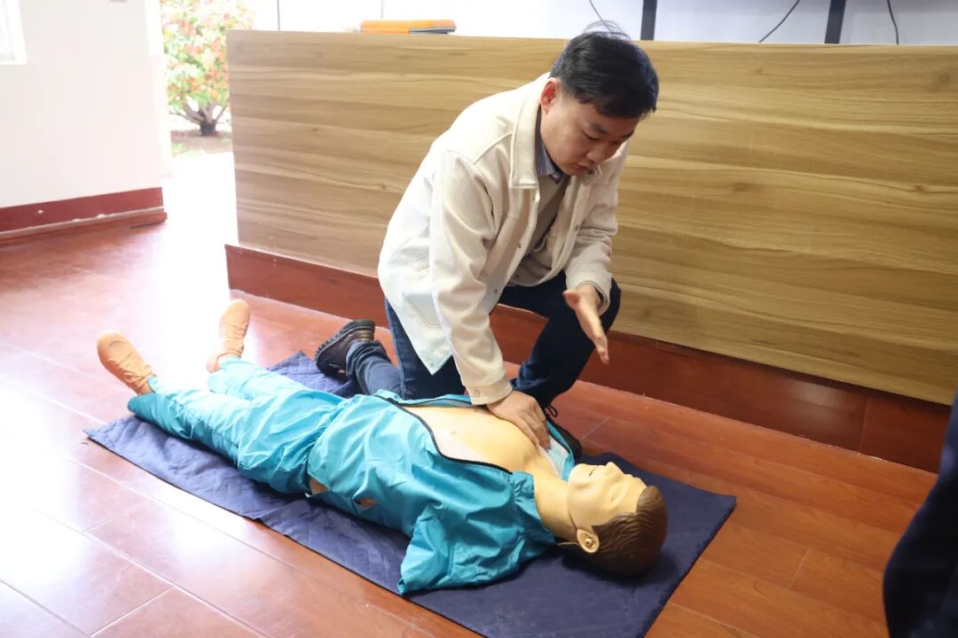 本轮培训紧扣农村应急救护实际需求,采用理论授课与现场实操相结合的方式,重点围绕心肺复苏规范操作、自动体外除颤器使用、气道异物梗阻急救等核心技能展开系统教学。考虑到农村留守老人和儿童较多的特点,讲师还专门强化了老年人突发晕厥、儿童意外呛噎等常见场景的应急处置教学。专业讲师现场示范、手把手指导、逐人纠正动作,确保参训人员听得懂、学得会、用得上,全面提升基层第一时间应急处置能力。