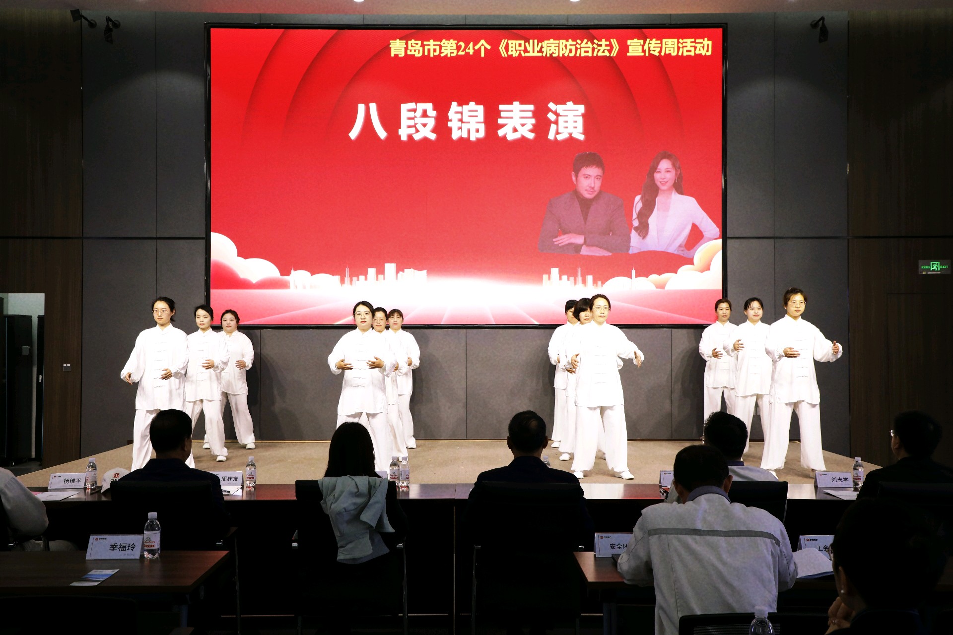 来自医疗卫生机构、企业和社会组织的代表为劳动者带来了精心准备的主题表演。青岛市疾控中心与西海岸新区疾控中心共同演唱歌曲《奔赴职业健康》;流亭街道社区服务中心现场展示健身气功八段锦;青岛市绍龙武馆馆长、国家级螳螂拳非遗传承人夏绍龙带领团队展示了武术表演螳螂拳;康辰健康体检中心团队带来了AED和心肺复苏规范表演。