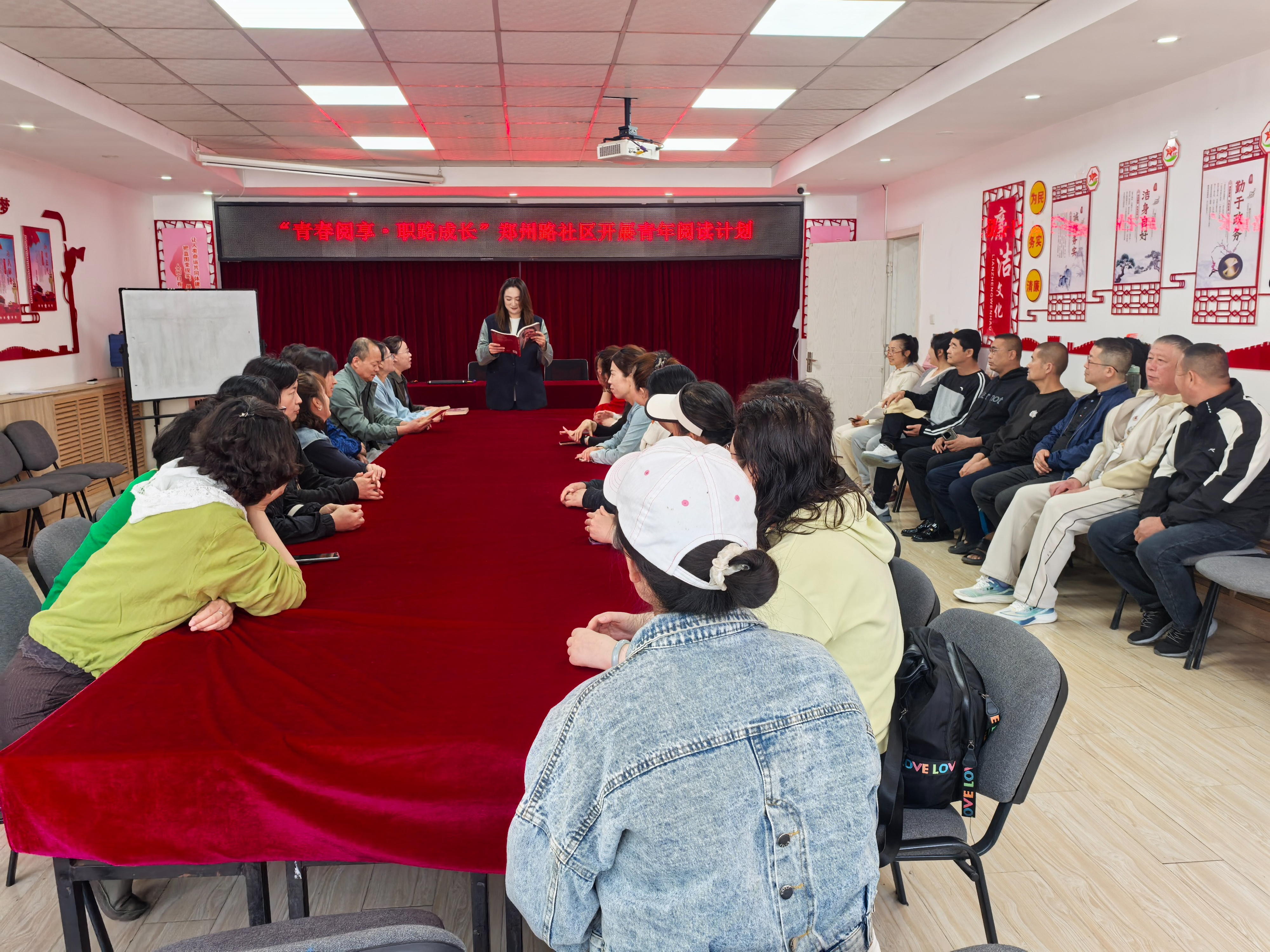 为深入落实“书香市北・阅启新程”2026年市北区第五届读书节部署,扎实推进“青春阅享・职路成长”青年阅读计划,近日,青岛市市北区洛阳路街道郑州路社区新时代文明实践站组织辖区青年、居民代表与社区工作人员齐聚一堂,开展主题阅读分享会,以阅读赋能成长、以书香浸润职场,在交流互动中凝聚青春力量、传递文明新风。