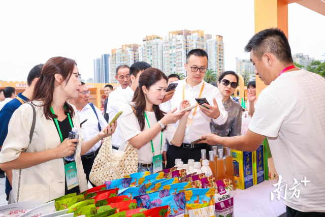 在“疆品南下 粤品北上”2025广东对口援疆地区名优产品走进大湾区展销活动中,展台前人流不断,消费者一边咨询,一边扫码下单。(资料图)
