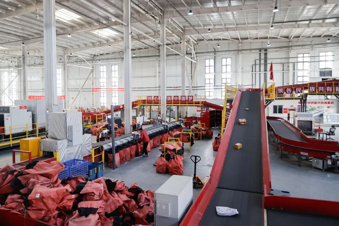 京东物流喀什仓内,机器轰鸣、人勤物畅,货物有序分拣。(资料图)喀什地区融媒体中心 记者侯立超 摄
