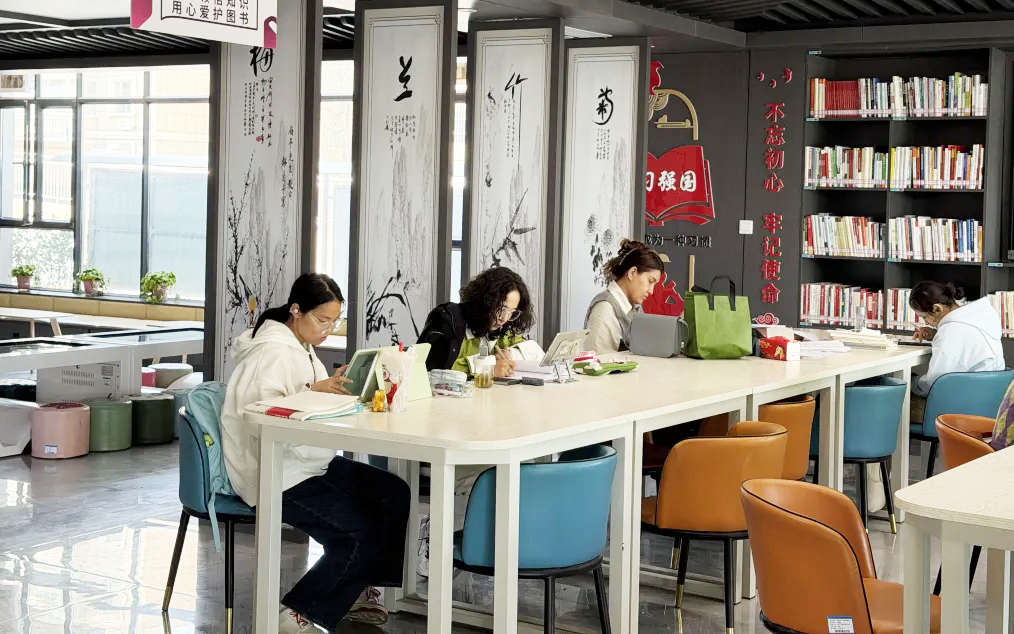 读者们正在“悦读粤有趣”城市书吧的自习区里读书学习。喀什地区融媒体中心 记者李霖 摄