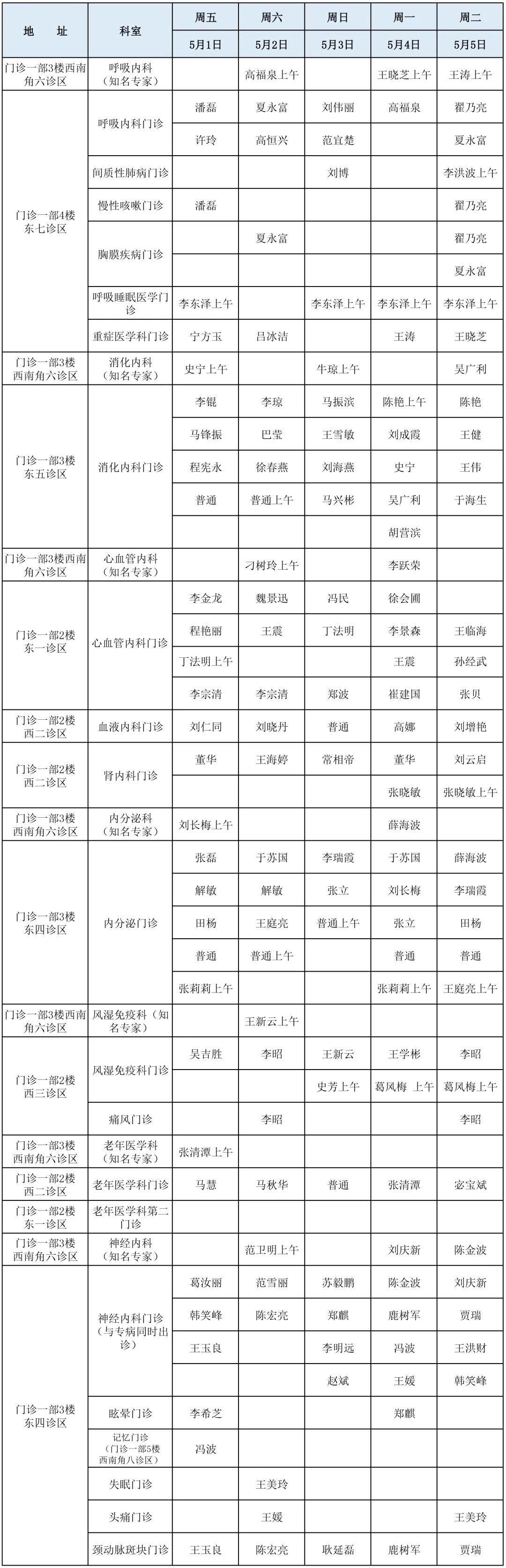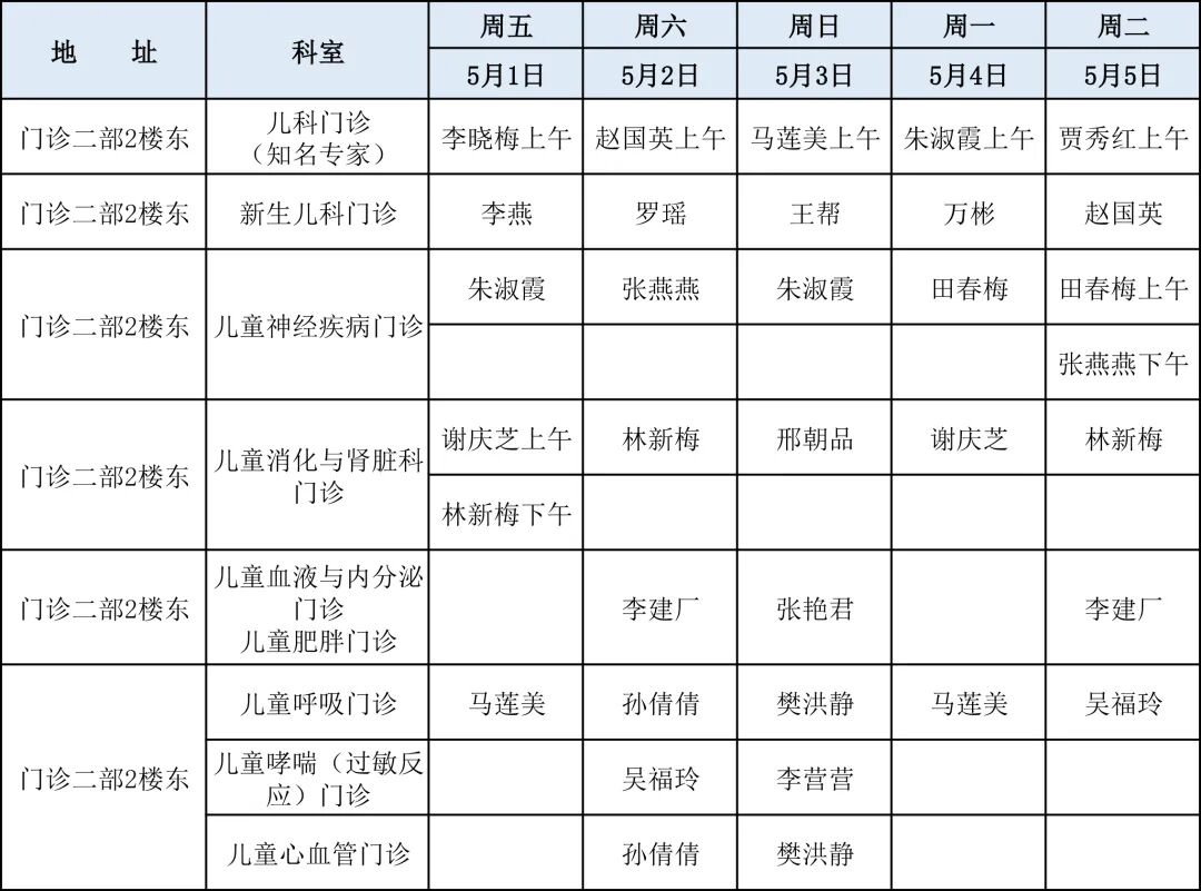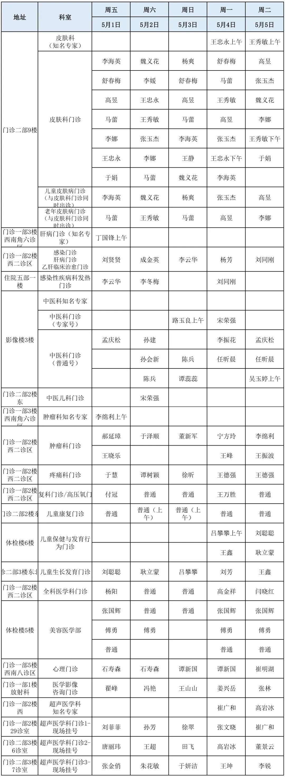 滨医直通车|滨医附院五一假期门诊医师坐诊表!