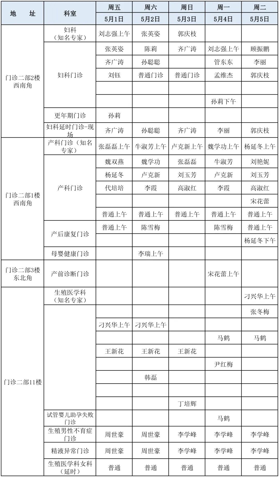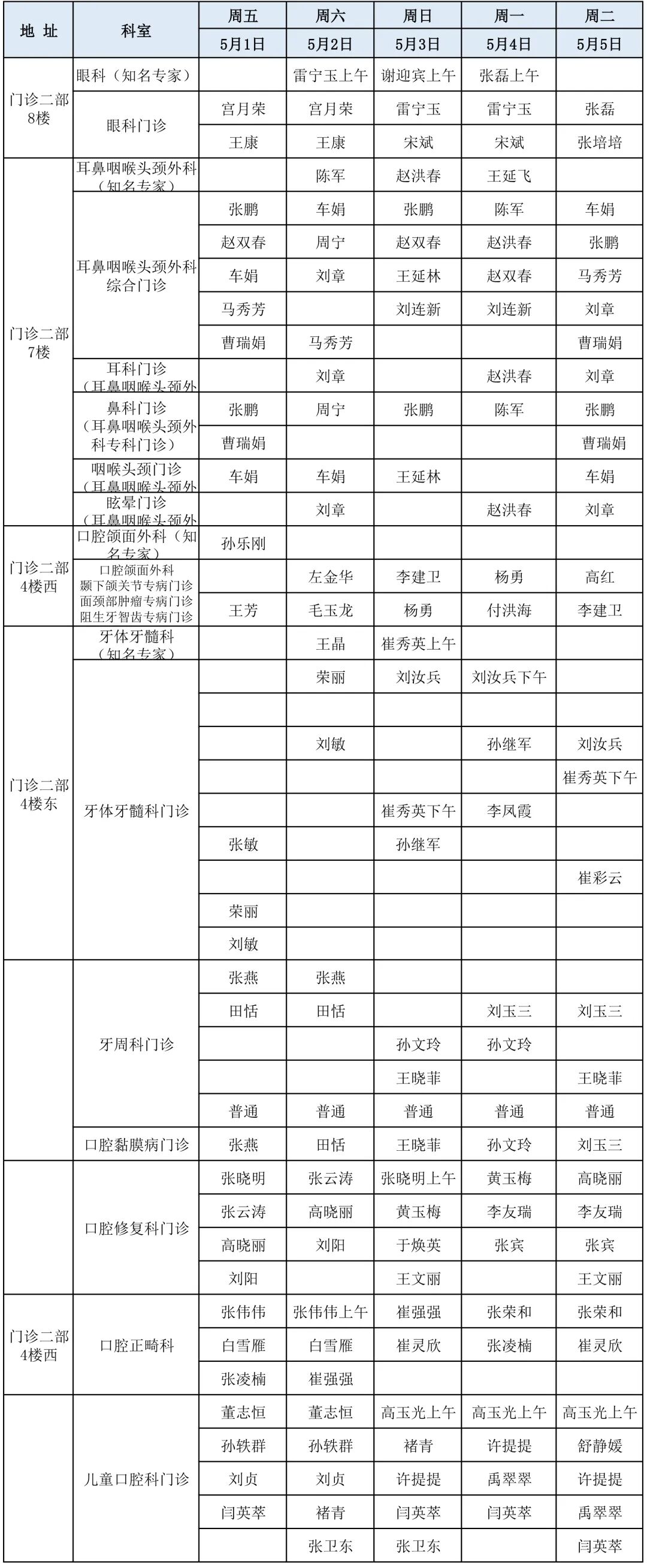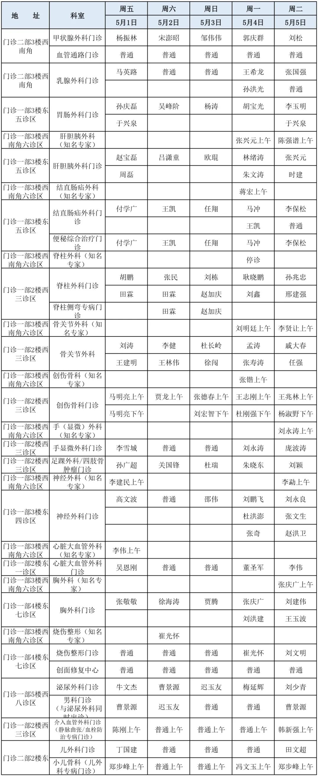 滨医直通车|滨医附院五一假期门诊医师坐诊表!
