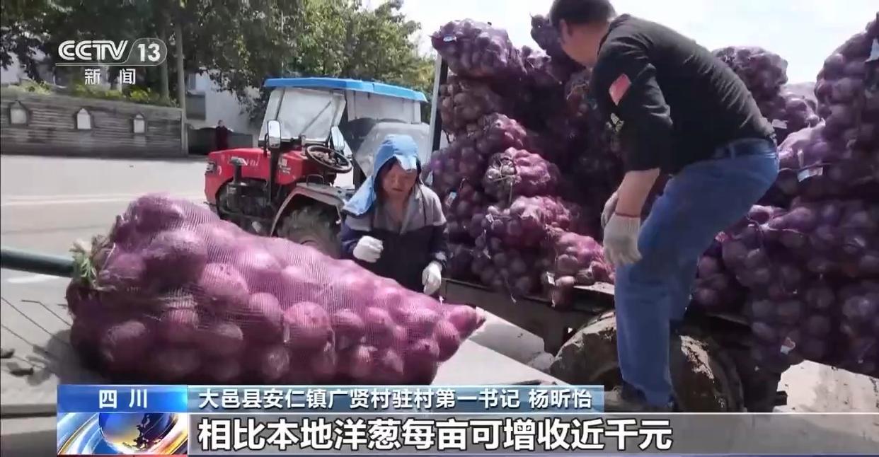 四川大邑县安仁镇广贤村驻村第一书记 杨昕怡:村里引进了红珠1号水果洋葱新品种,相比本地洋葱每亩可增收近千元,有效地带动了村民增收致富。
