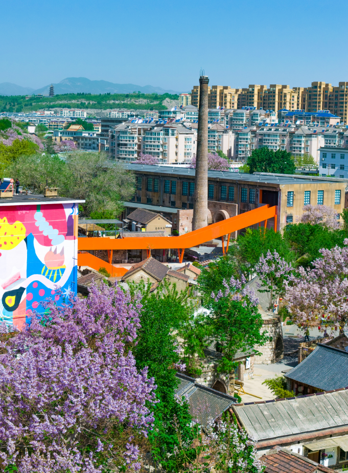 焕新后,景区完成了刘家大院等明清古建筑的修缮,并在旧厂区搭建起醒目的橙色空中步道,将第五车间与核心广场有机相连,形成更加立体的空中游线。