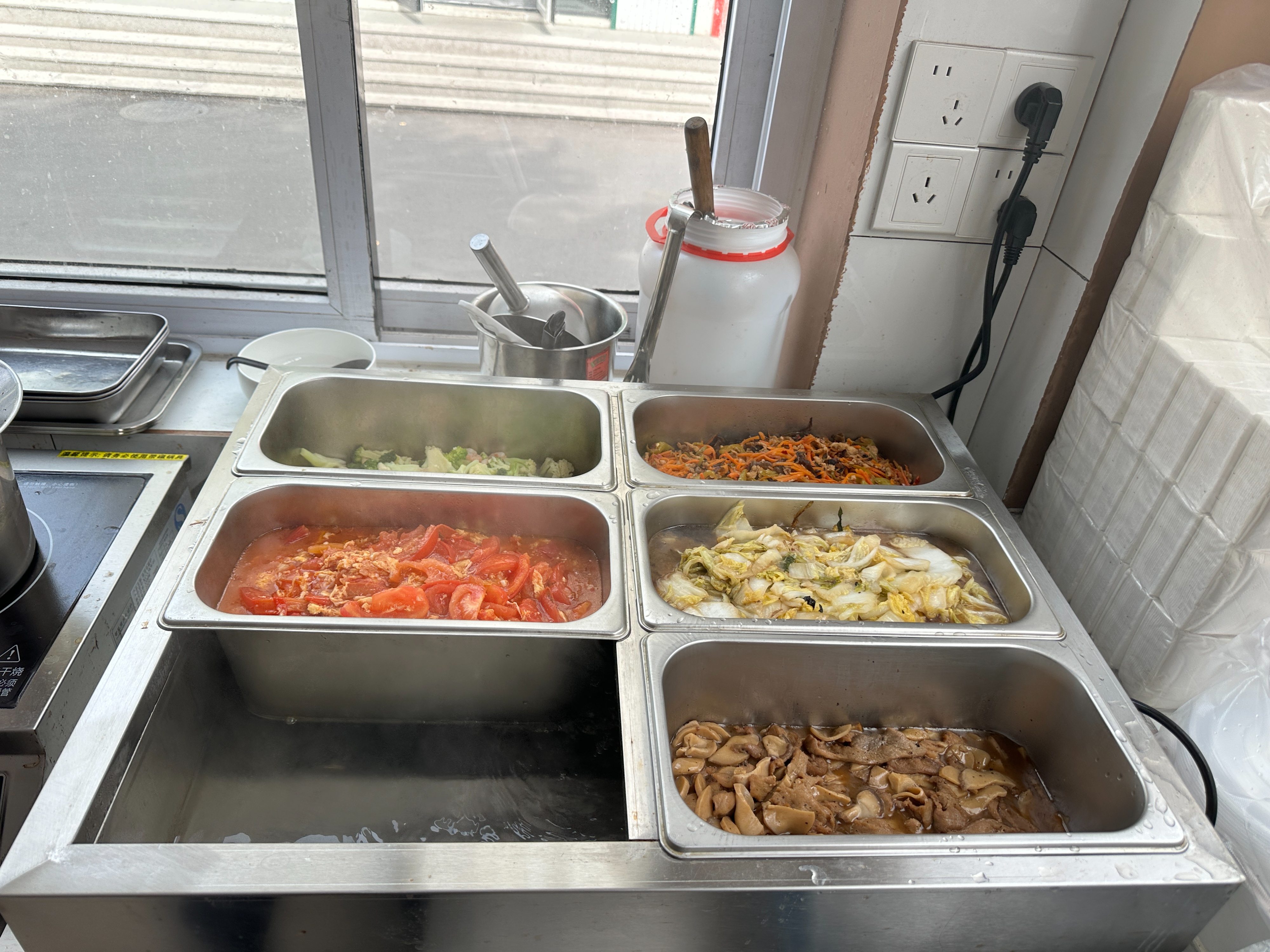 他们注意到,周边住的大多是早出晚归的务工人员,老人吃饭没人管,孩子放学家长还没到家,这是一个真实存在、却长期被忽视的需求缺口。两人当即调整策略,推出15元一份的自选盒饭,红烧肉压阵,每日轮换六道家常菜——鱼香肉丝、西红柿炒鸡蛋、虾仁西兰花……家常的味道配上实惠的价格,慢慢地悄悄拴住了周边食客的胃。