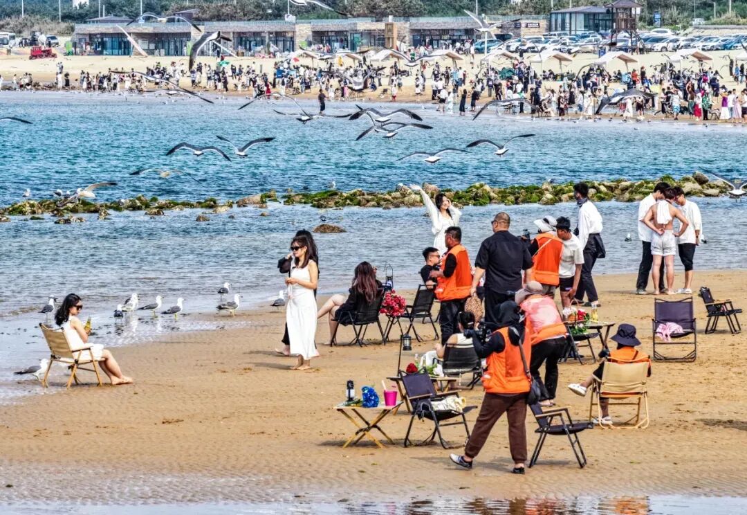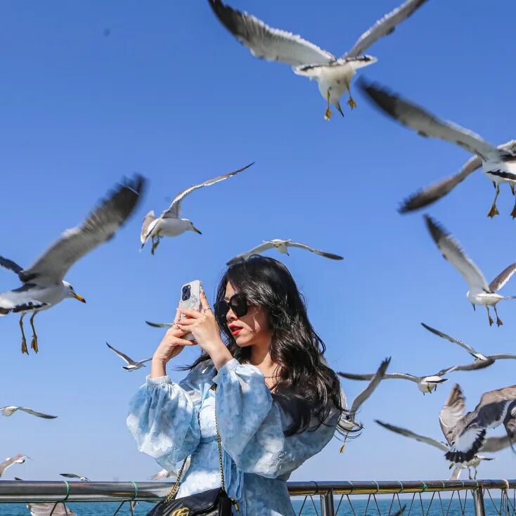 作为“中国黑尾鸥之乡”,荣成有万千海鸥翱翔。它们追船逐浪、低空盘旋,抬头可见鸥鸟与碧海相映,人与自然和谐相融,是春日最灵动的生态美景。